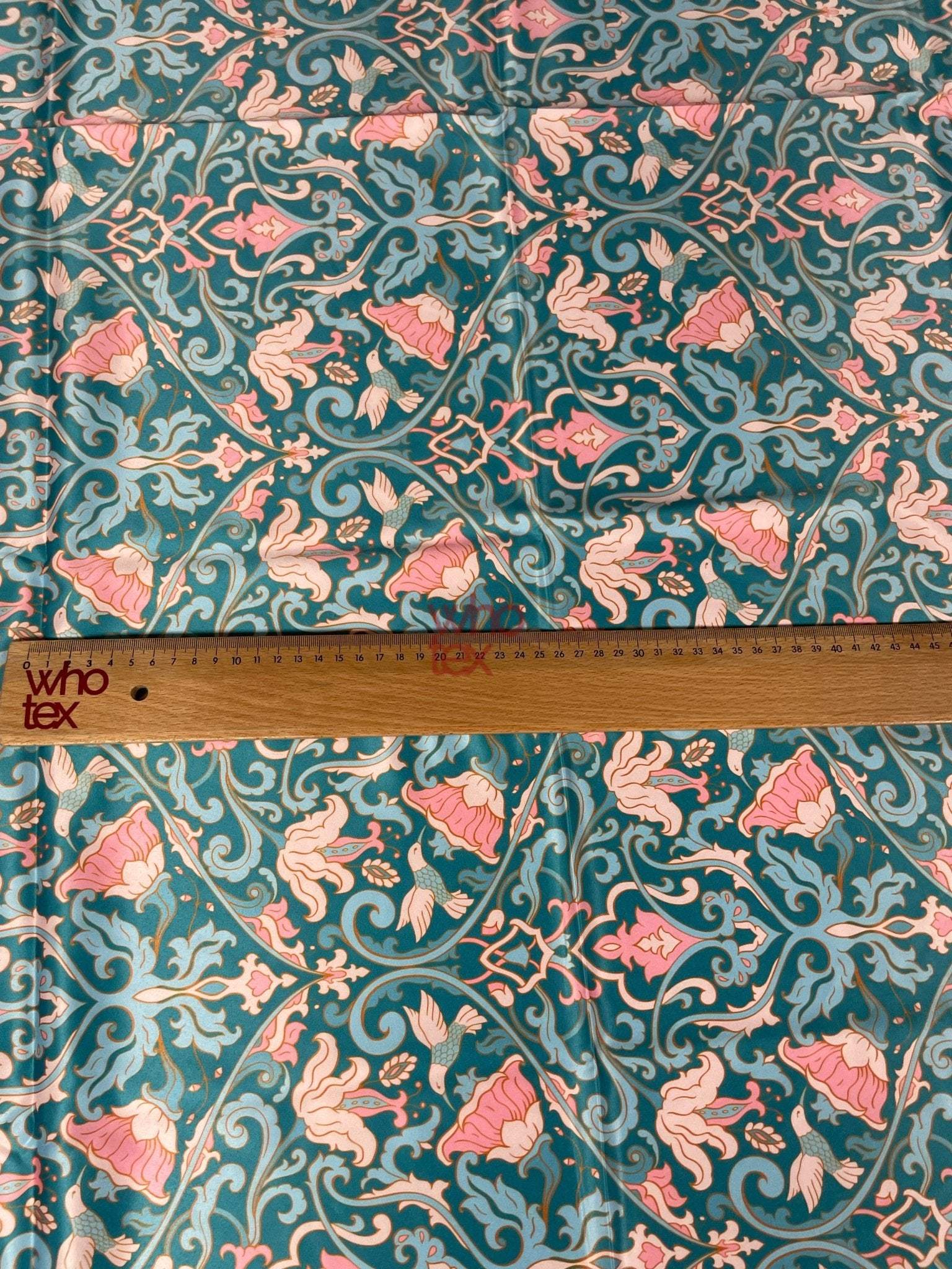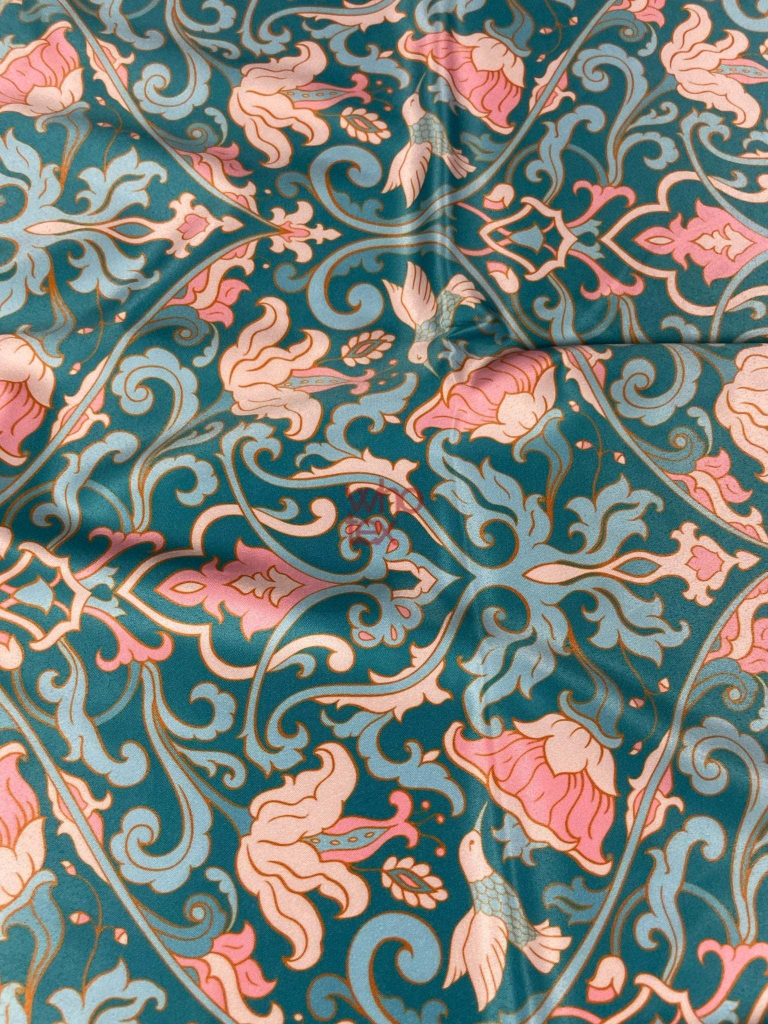 Vintage-Inspired Floral Fabric with Birds – Available in Satin, Crepe, Spandex & Chiffon | By Metre