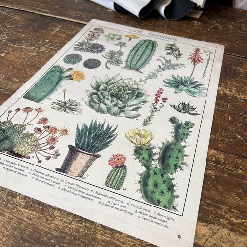 Vintage Metal Sign - Retro Cacti & Succulents Identification Picture