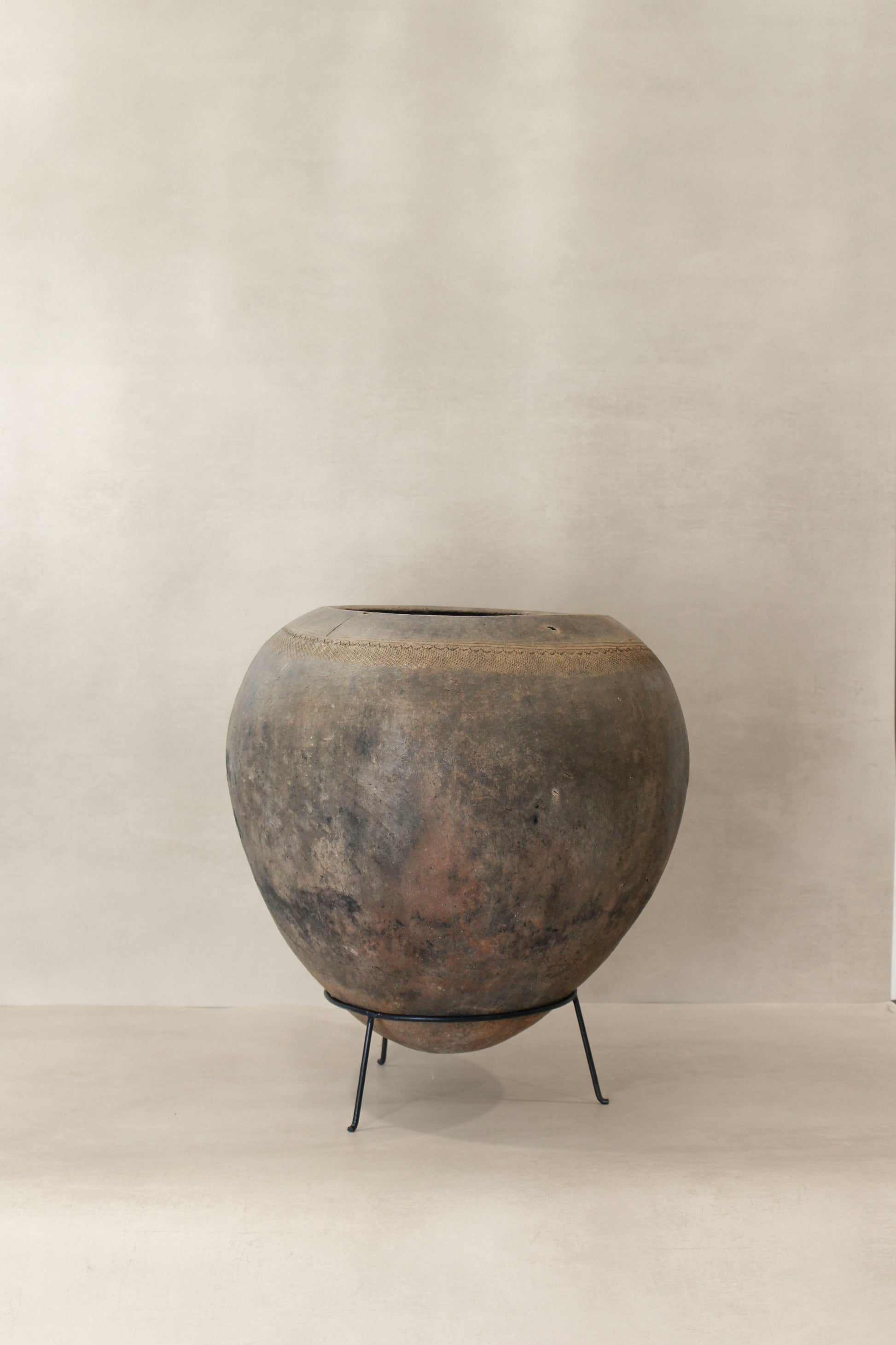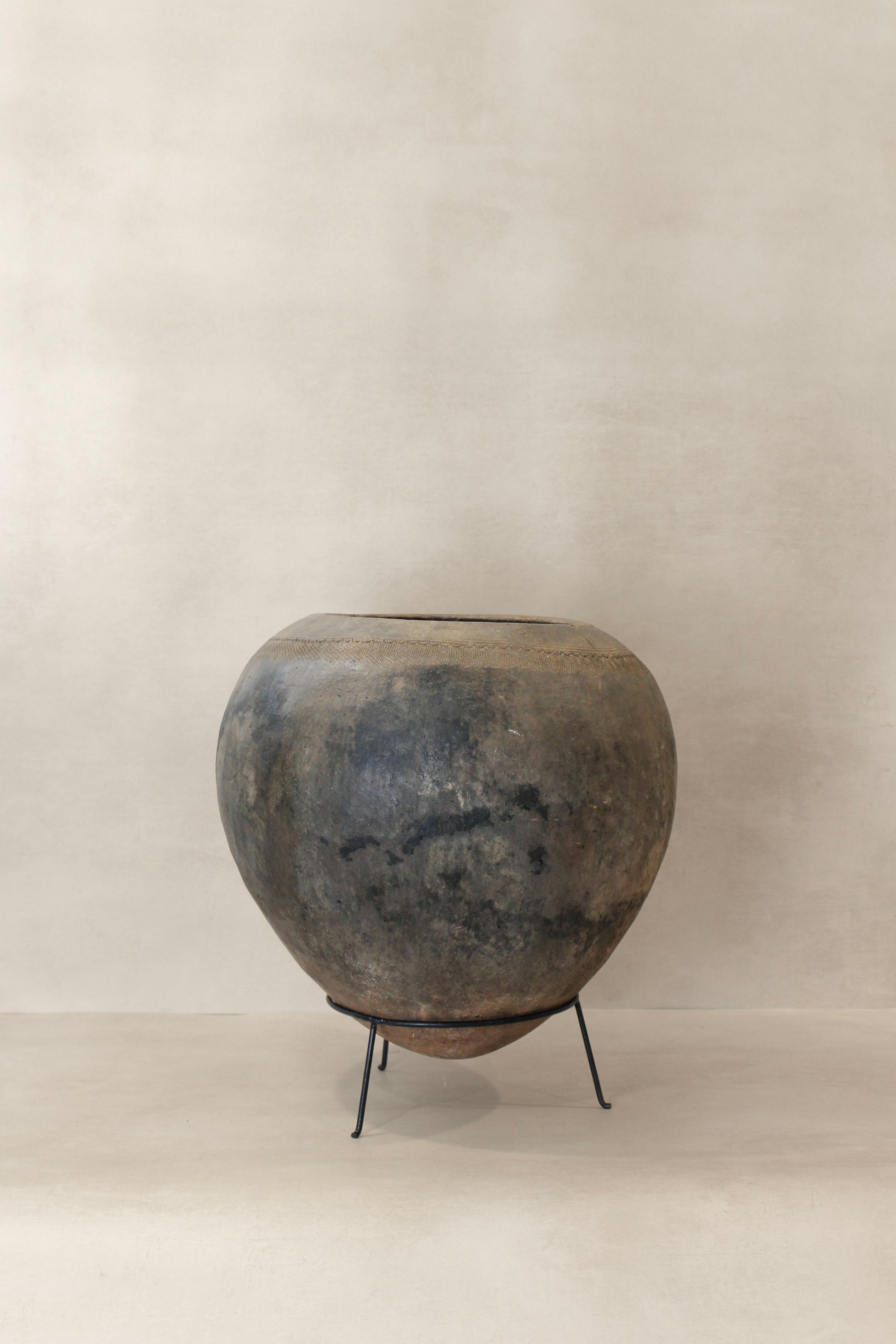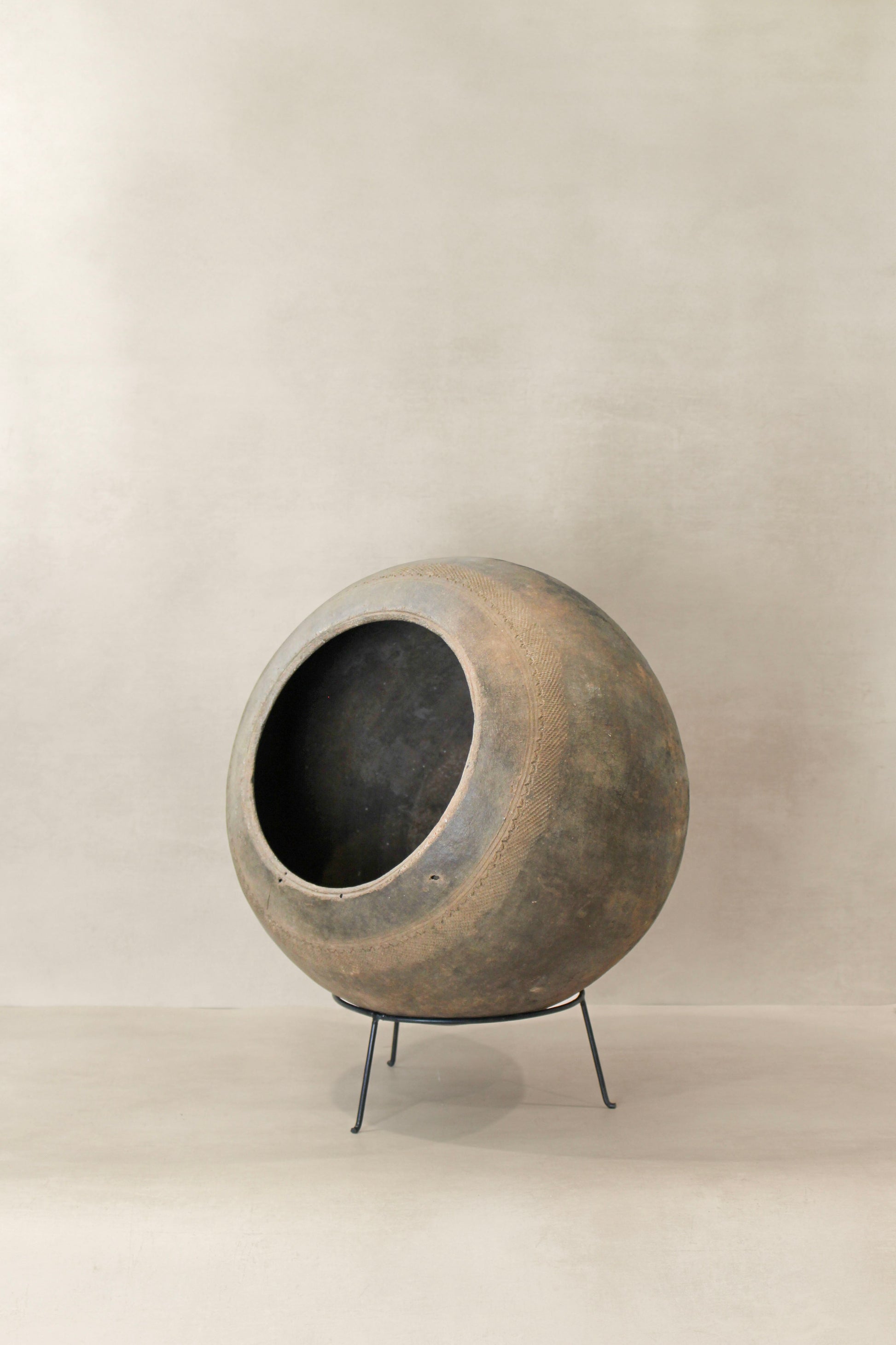 Historic Detail: Behold the exquisite rarity of this Nupe water vessel, meticulously handcrafted by the skilled artisans of the Nupe people in Nigeria. Adorned with meticulously incised geometric designs and surface patterns, these functional pots once graced the interiors of Nupe houses, arranged on terracotta supports. The rounded base attests to their practical use, often carried gracefully on the head with the aid of cloth rings.