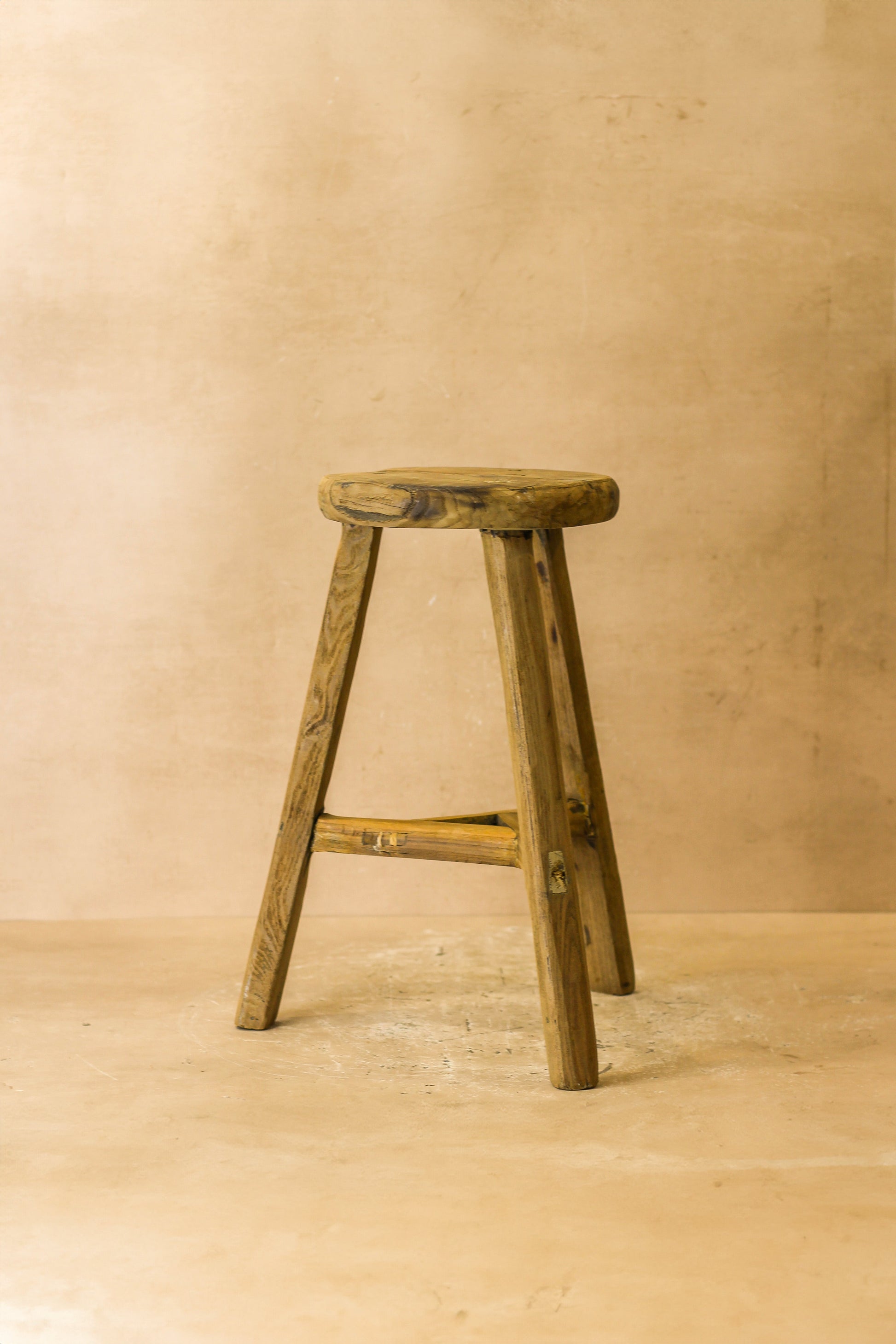 Vintage Rustic Elm Wood Stool - Round - No 46
