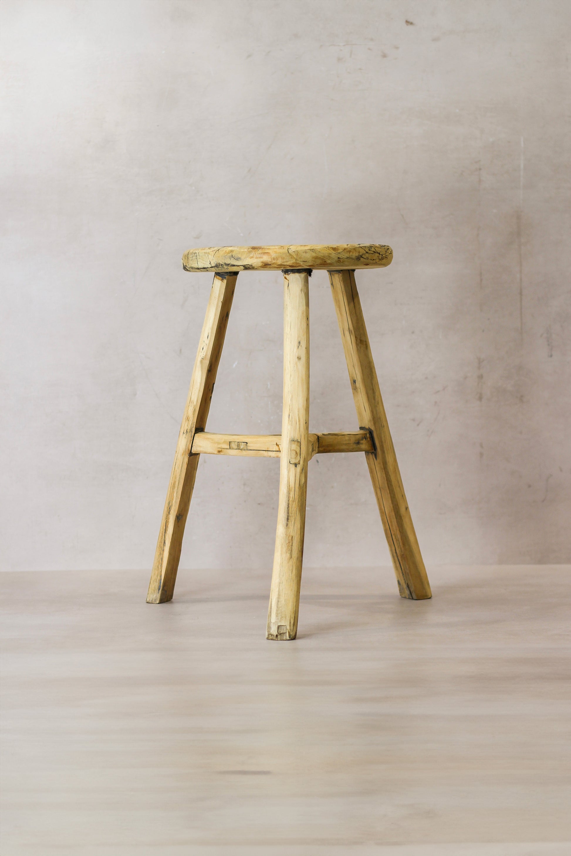 Vintage Rustic Elm Wood Stool - Round - No 50
