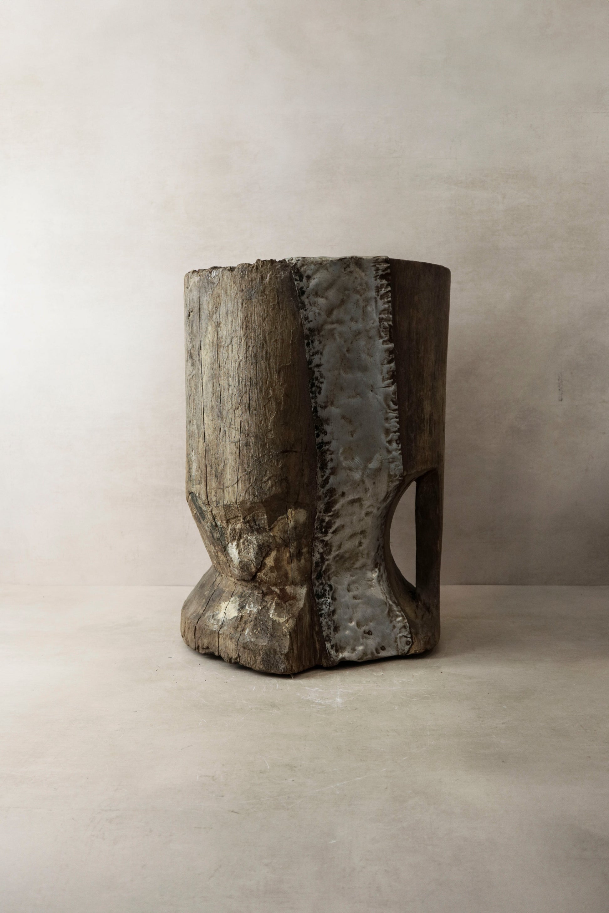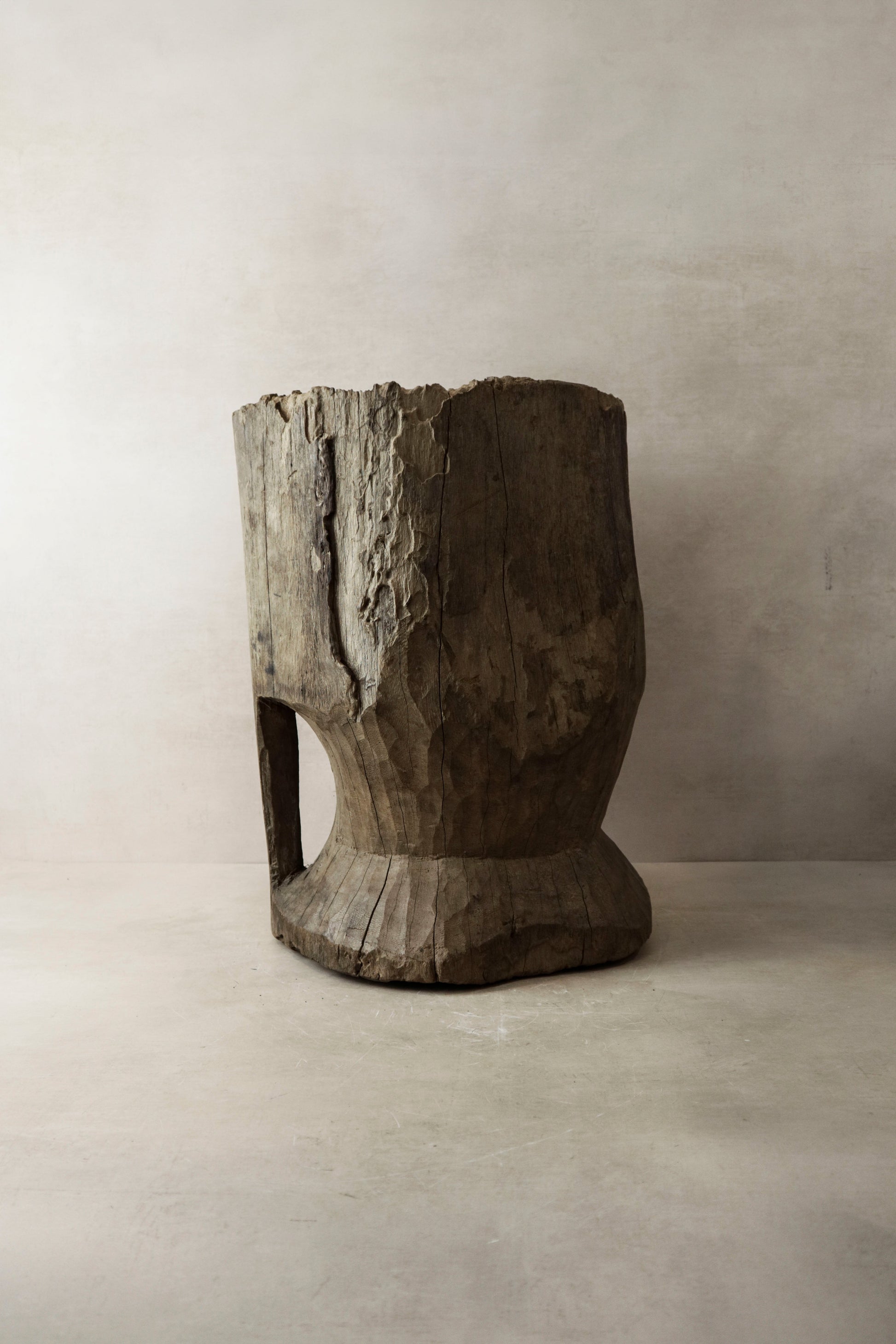 African grain stompers are hand-made when tree trunks are hollowed out and then used to grind grain. We recycle them to use as planters, vases or interior object with a rich history.
