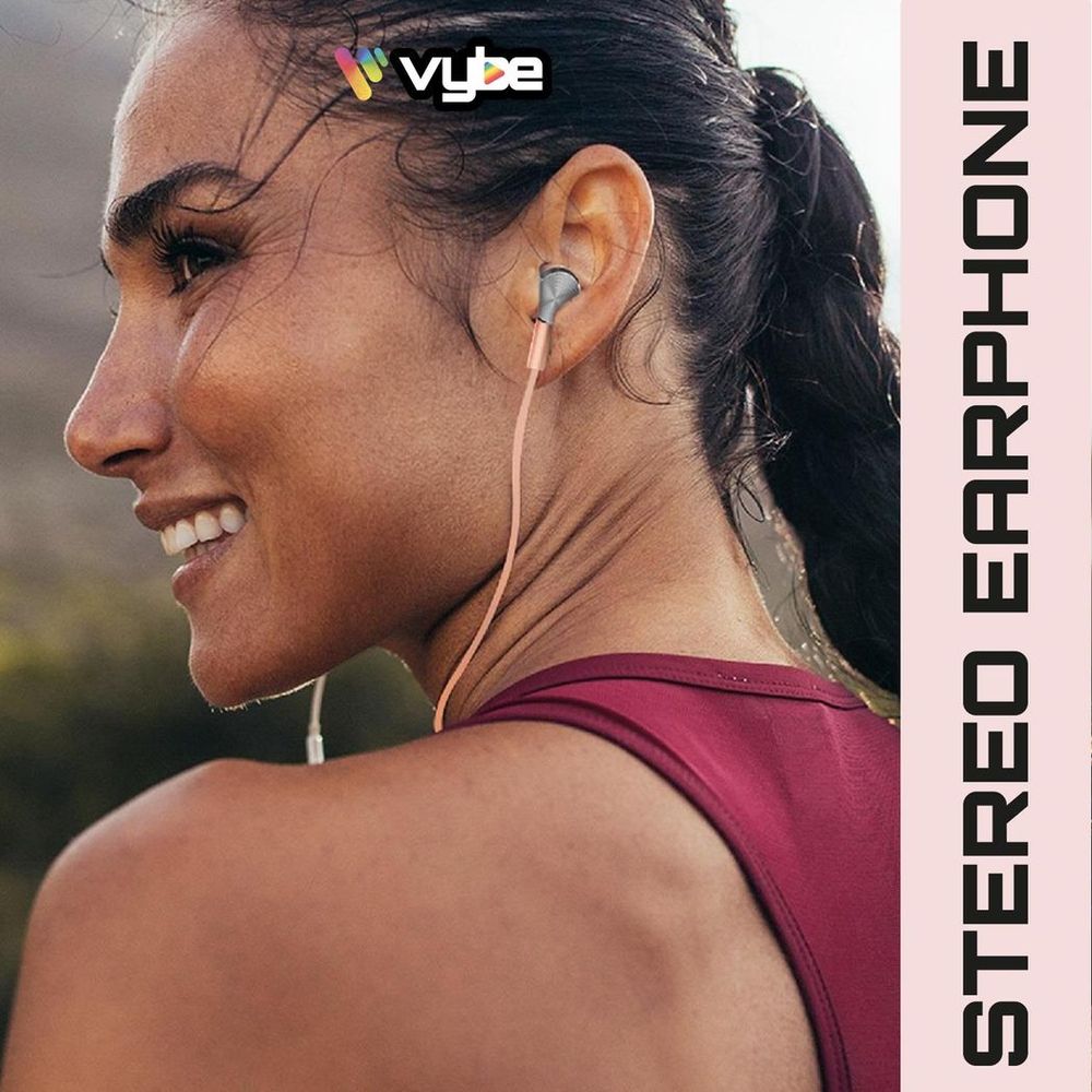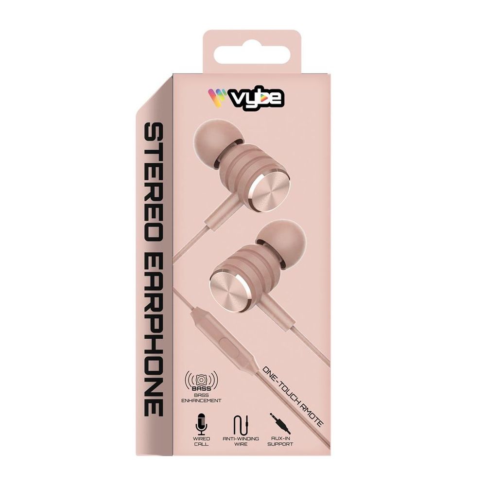 Vybe Bass Enhancer Earphones - One-Touch Remote, AUX-in, Stereo - Pink