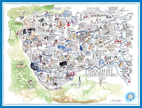 A fantastic and funny map of Yorkshire! In this funny map jigsaw puzzle, you will find many classic Yorkshire traits and idiosyncrasies.