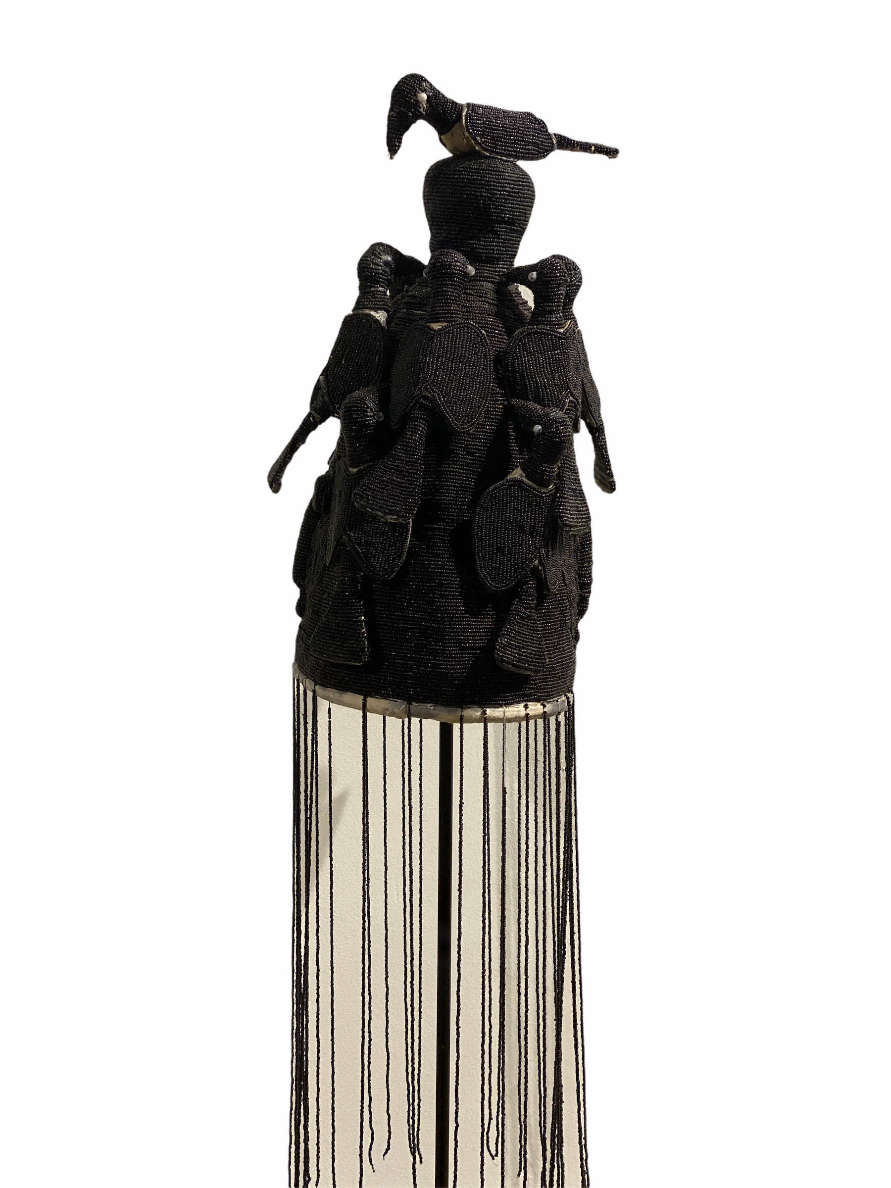 These elaborately decorated beadwork crowns are worn by chiefs on ceremonial occasions where it is believed they aid him in taking on supernatural abilities.