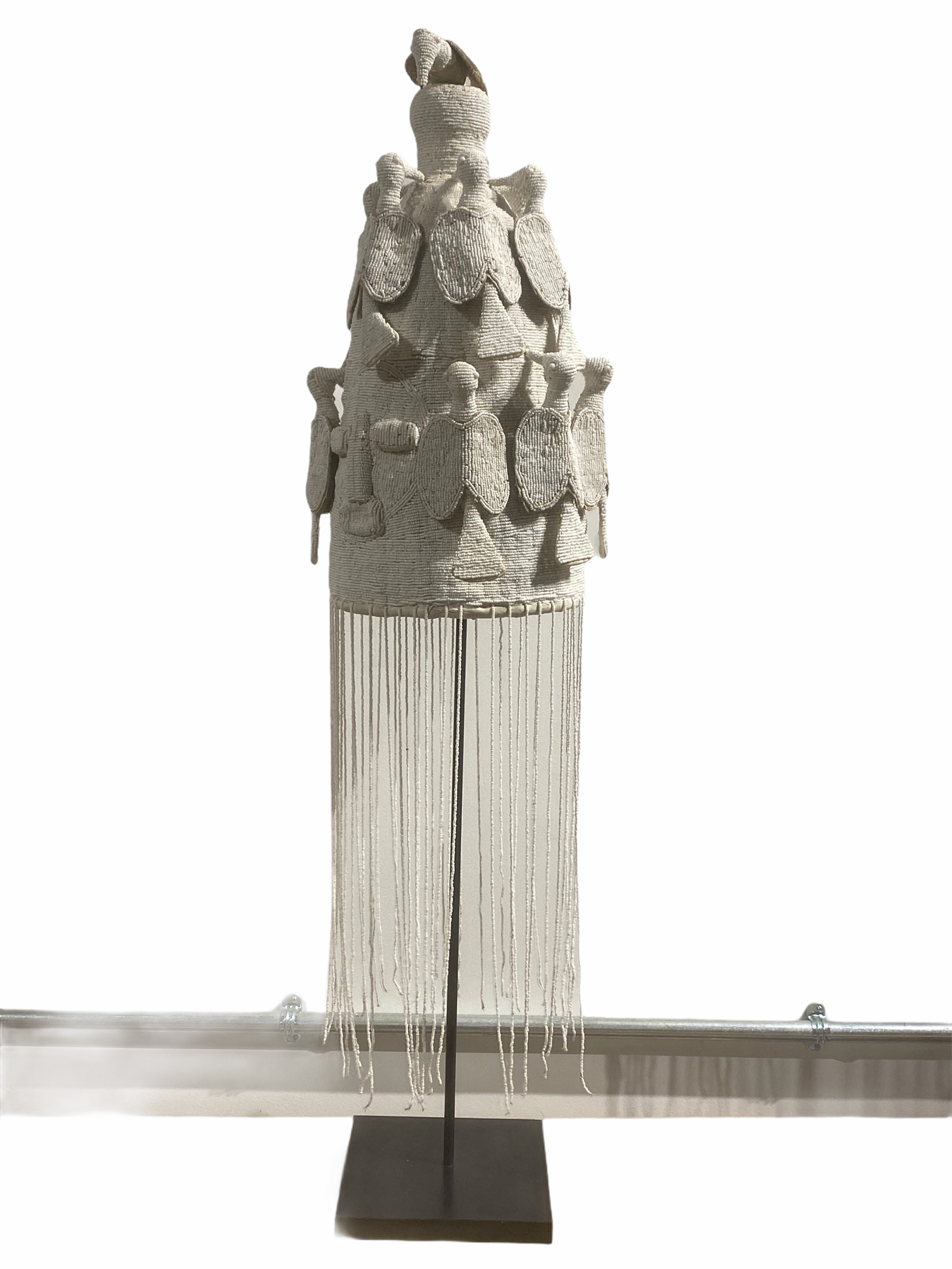 These elaborately decorated beadwork crowns are worn by chiefs on ceremonial occasions where it is believed they aid him in taking on supernatural abilities.
