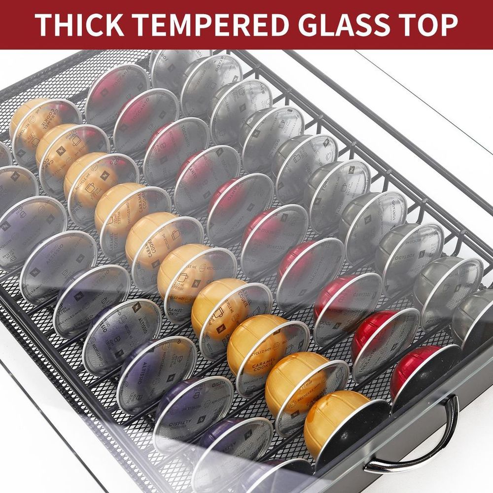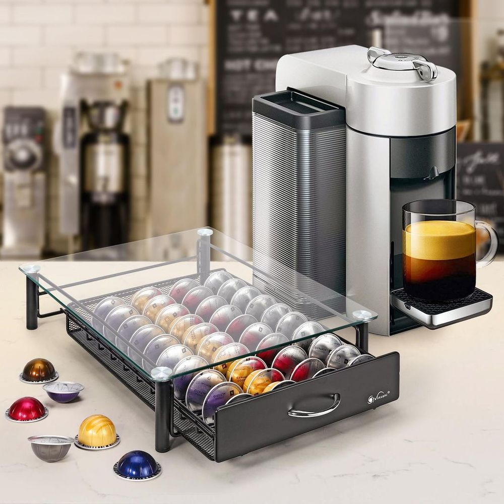 your kitchen." "Organized and quick access to your favorite coffee pods." "High-quality construction for long-lasting durability." "Perfect for home or office use." "Streamline your coffee routine with this versatile storage drawer.