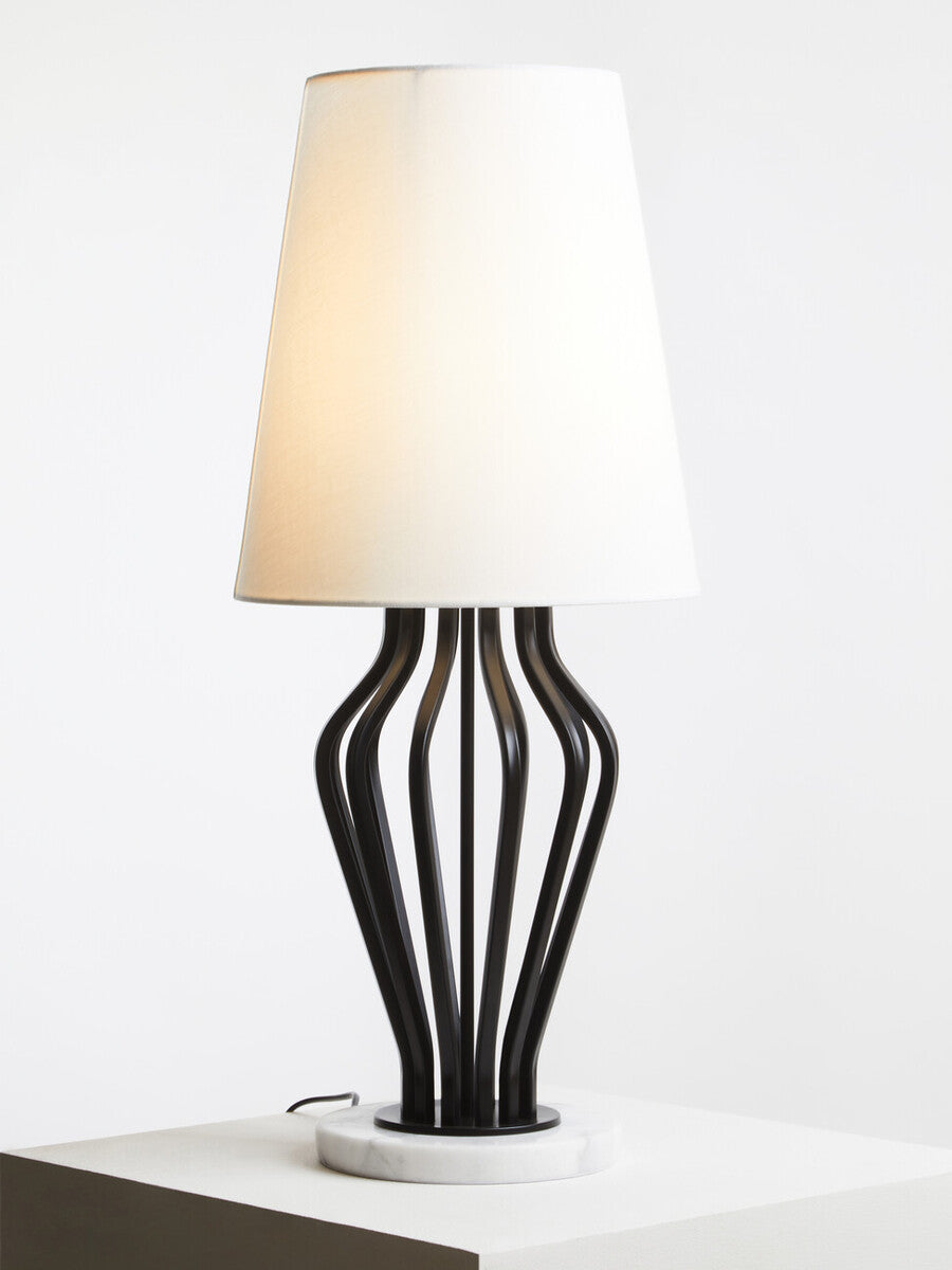 Crafted from natural marble and smooth iron, this lamp celebrates timeless monochrome contrast. The white empire shade softens the bold black base, creating a harmonious balance that feels tailored and versatile.