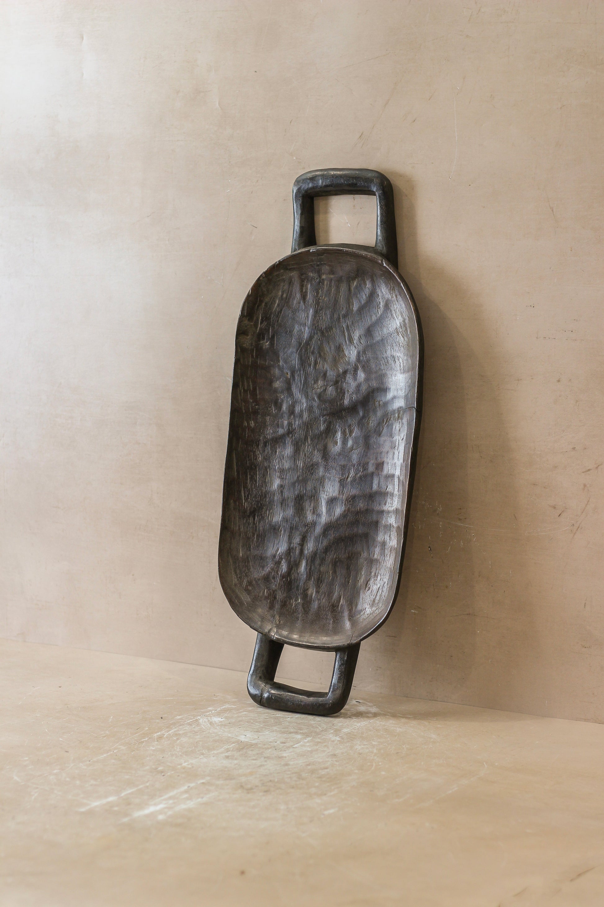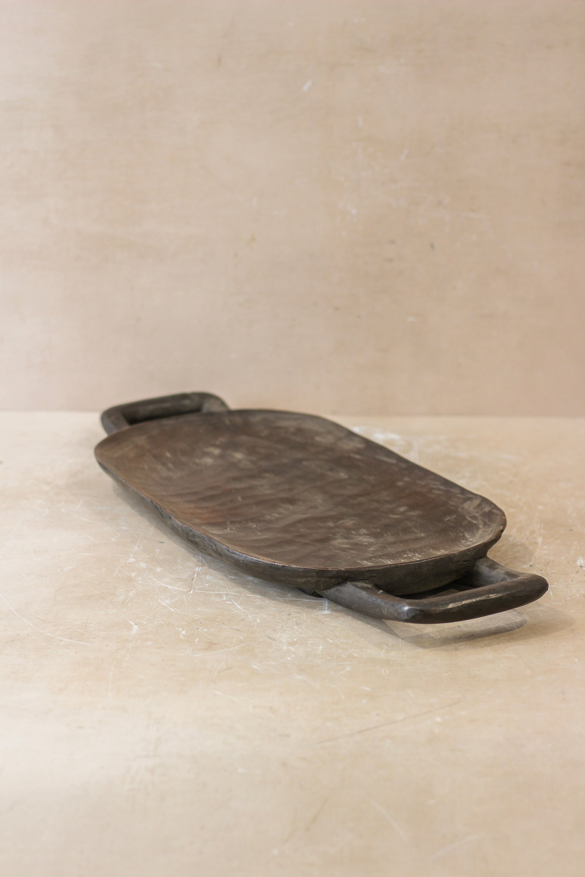 This wonderful handcrafted wooden Zulu platter is known by the local Zulu people as an ugqoko. The wood used does vary but in most cases the Zulu would use the Kiaat wood that is found locally in South Africa. The Zulu serving plate is an important item that is in daily use today and has handles on the side of the food platter for easy handling. The platters are often times placed upside down over another platter to act as a cover.