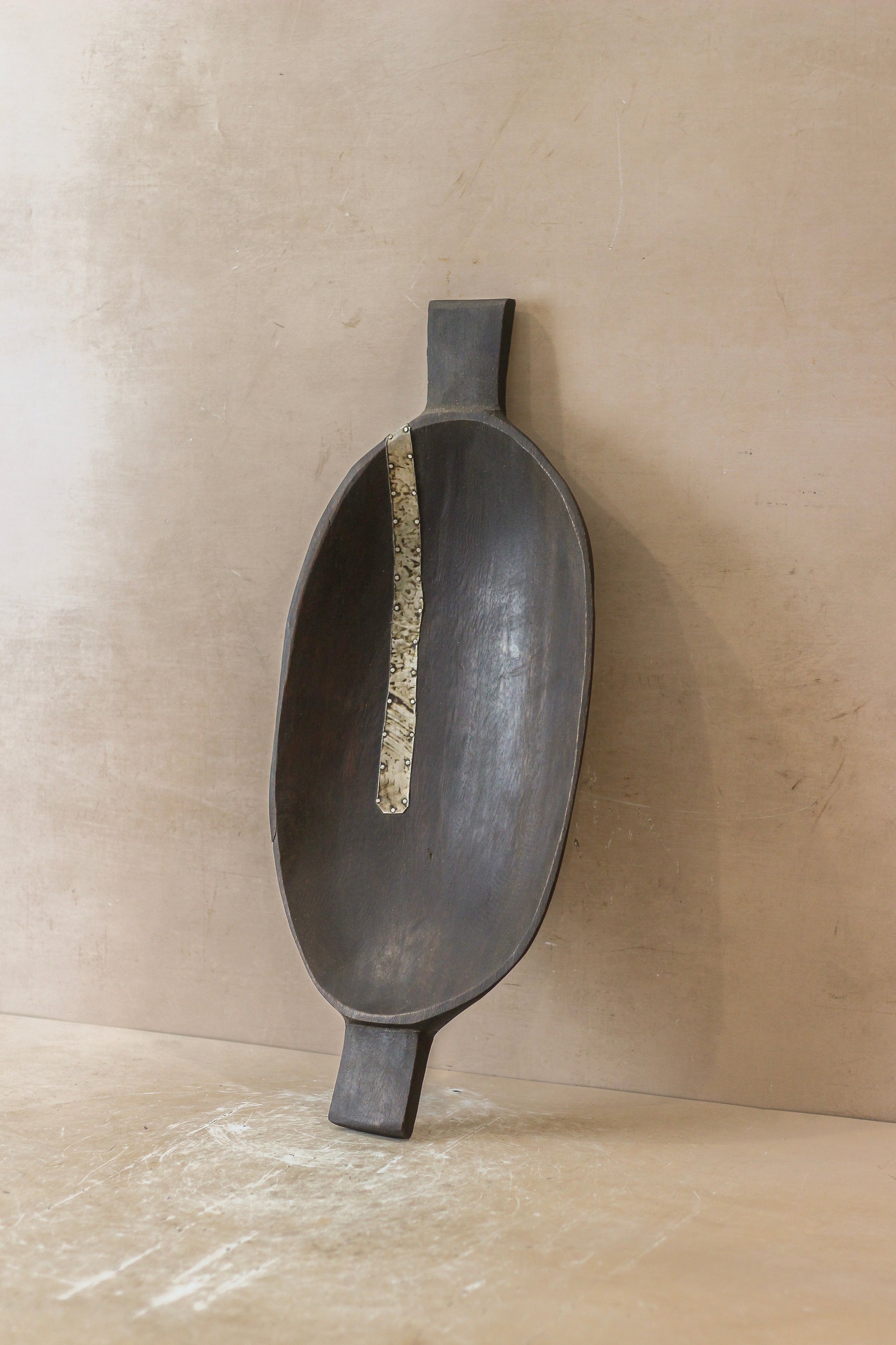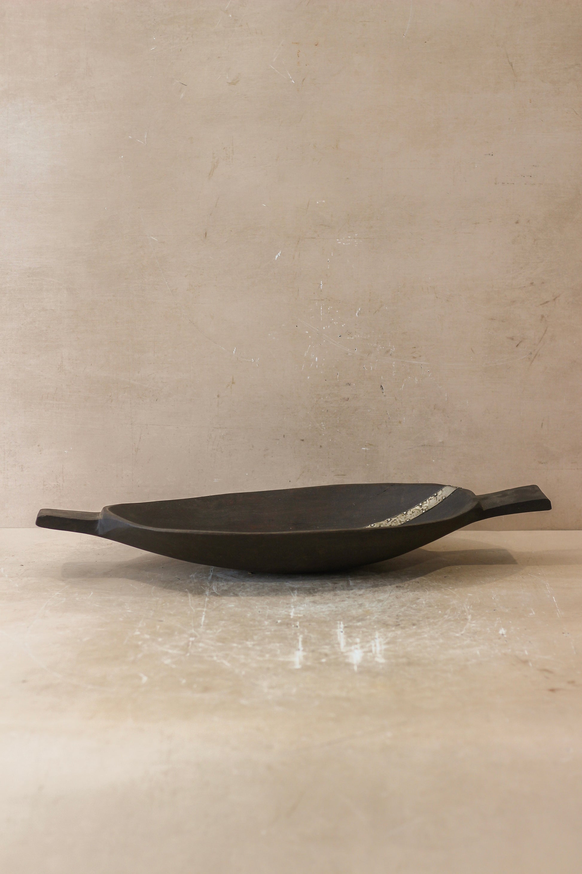 This wonderful handcrafted wooden Zulu platter is known by the local Zulu people as an ugqoko. The wood used does vary but in most cases the Zulu would use the Kiaat wood that is found locally in South Africa. The Zulu serving plate is an important item that is in daily use today and has handles on the side of the food platter for easy handling. The platters are often times placed upside down over another platter to act as a cover.