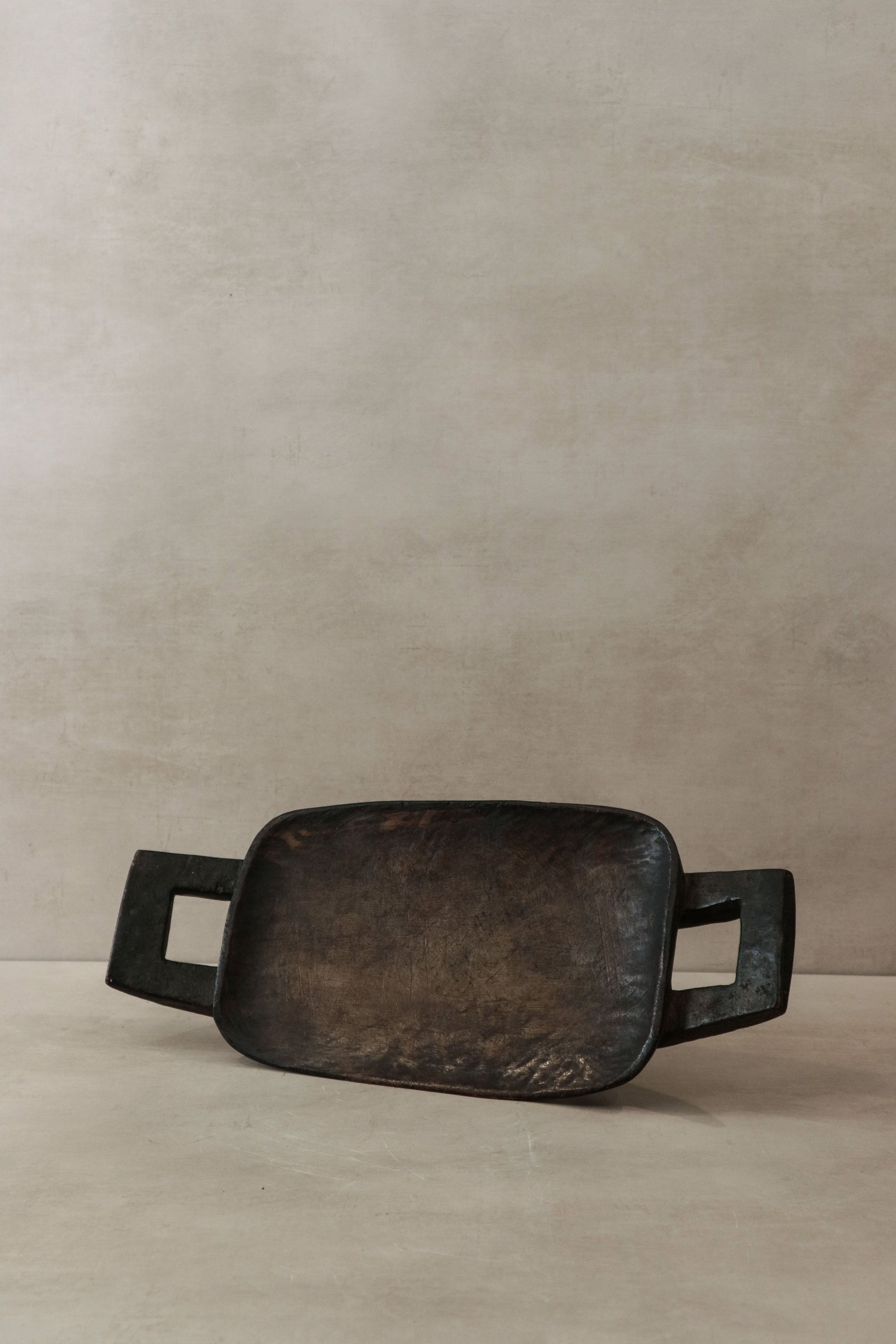 This wonderful handcrafted wooden Zulu platter is known by the local Zulu people as an ugqoko. The wood used does vary but in most cases the Zulu would use the Kiaat wood that is found locally in South Africa. The Zulu serving plate is an important item that is in daily use today and has handles on the side of the food platter for easy handling. The platters are often times placed upside down over another platter to act as a cover.