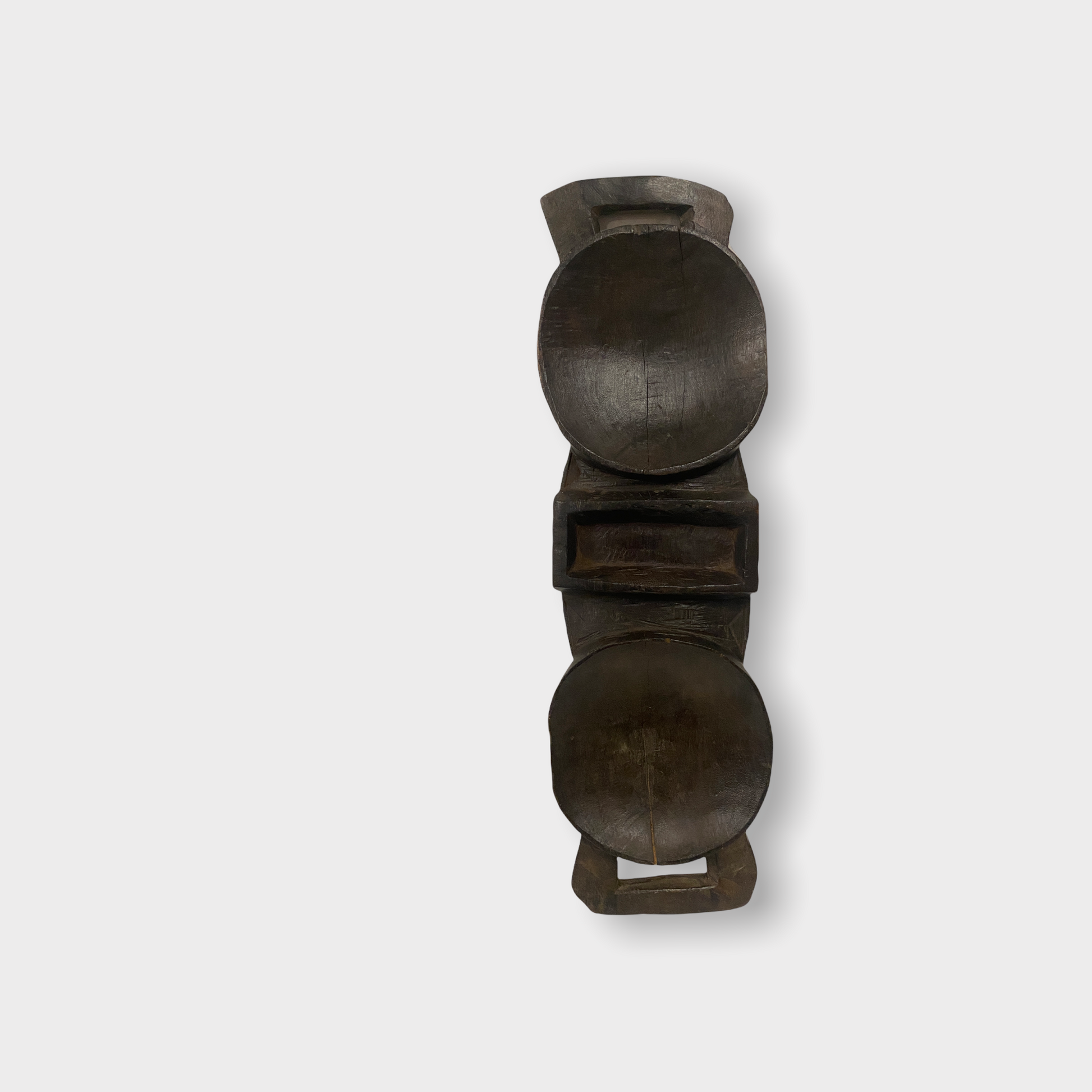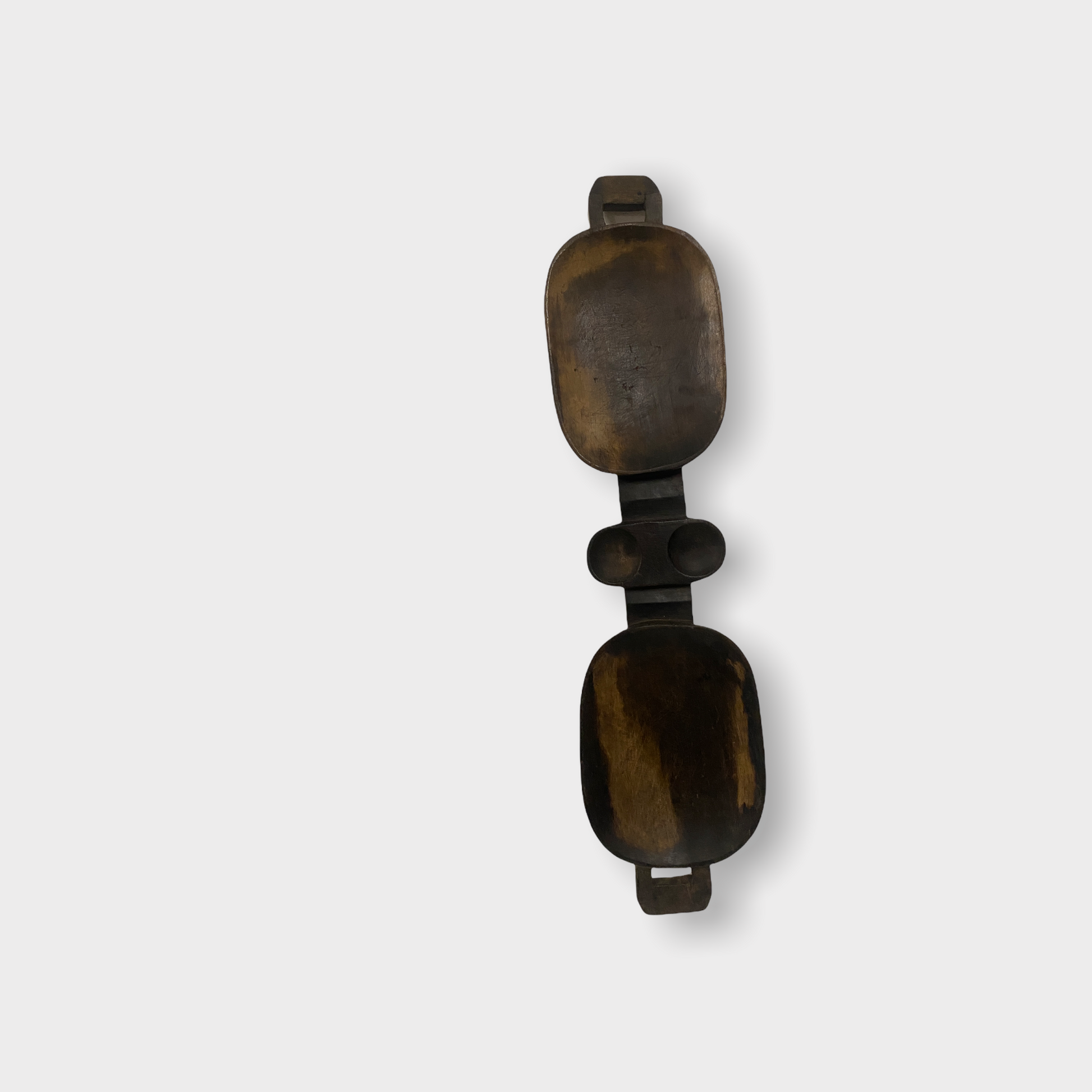 This wonderful handcrafted wooden Zulu platter is known by the local Zulu people as an ugqoko. The wood used does vary but in most cases the Zulu would use the Kiaat wood that is found locally in South Africa. The Zulu serving plate is an important item that is in daily use today and has handles on the side of the food platter for easy handling. The platters are often times placed upside down over another platter to act as a cover.