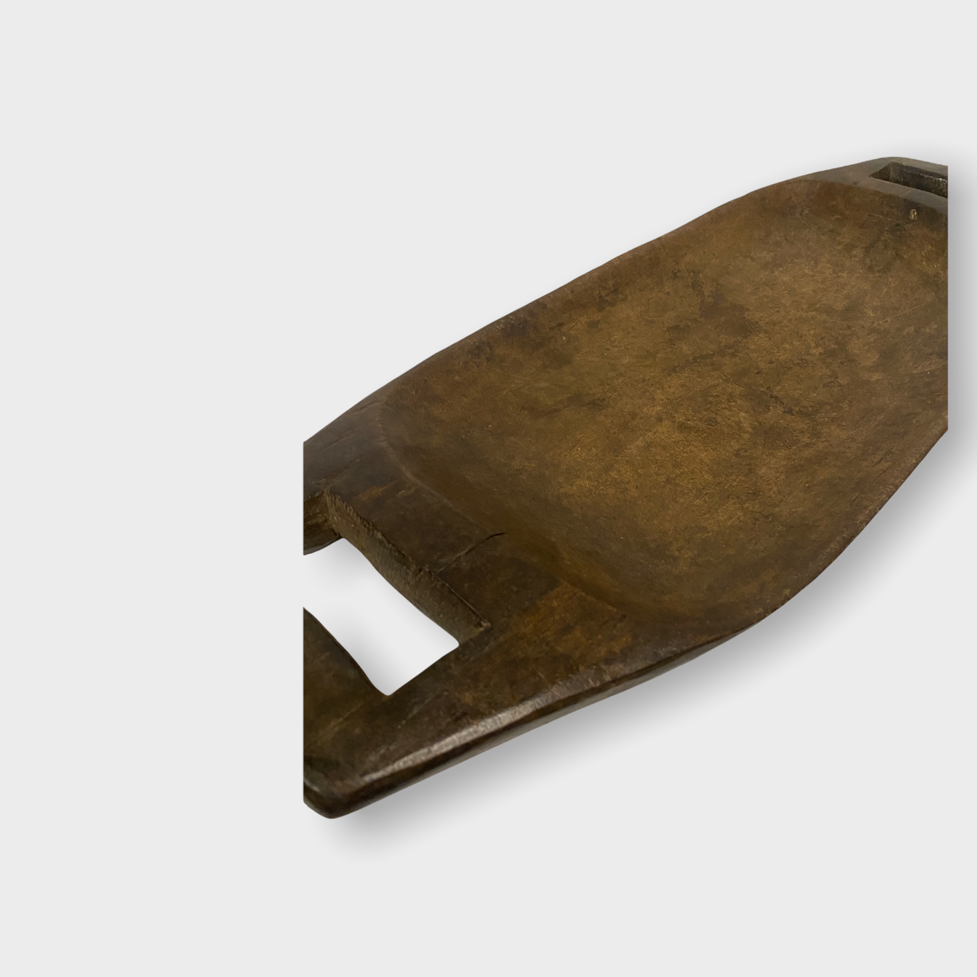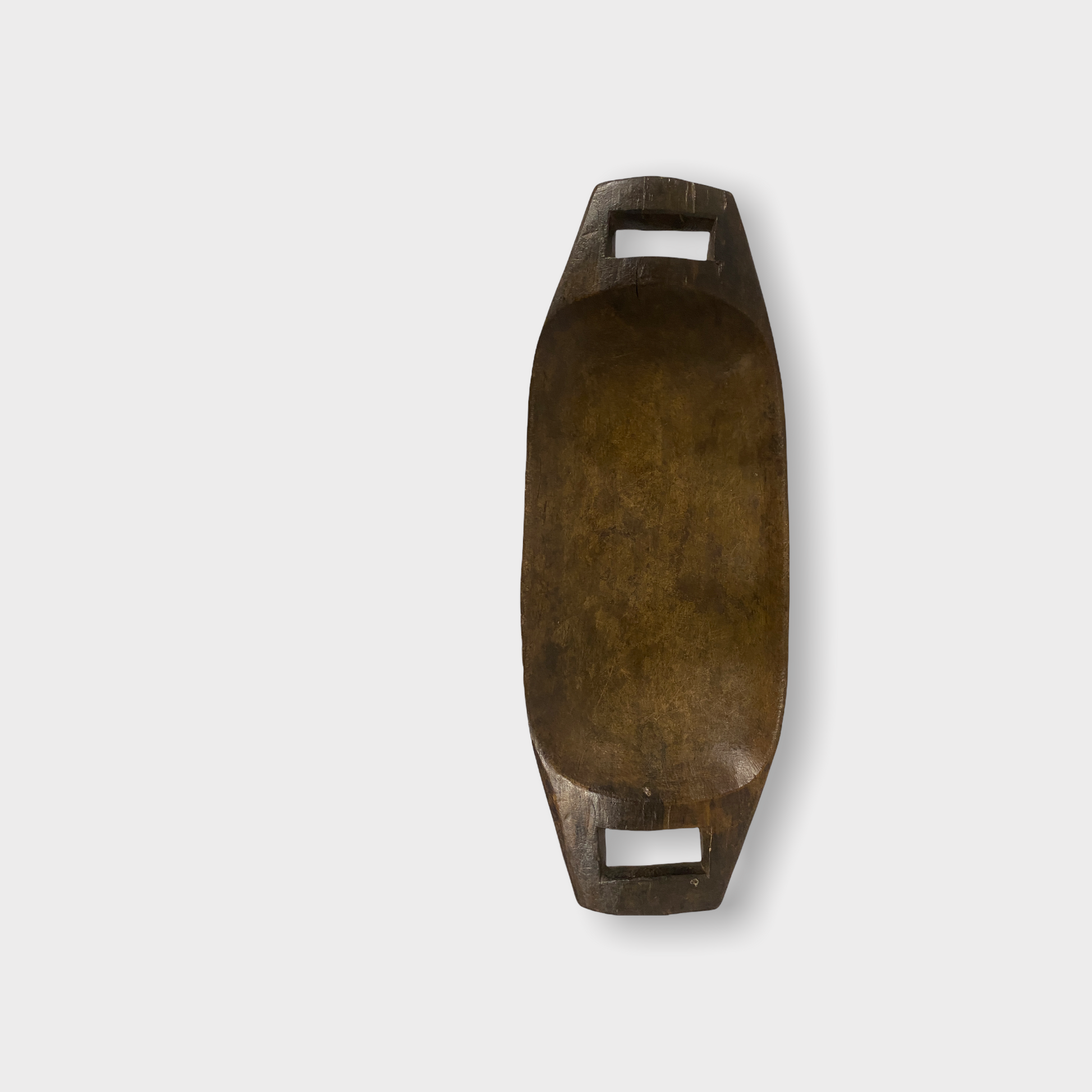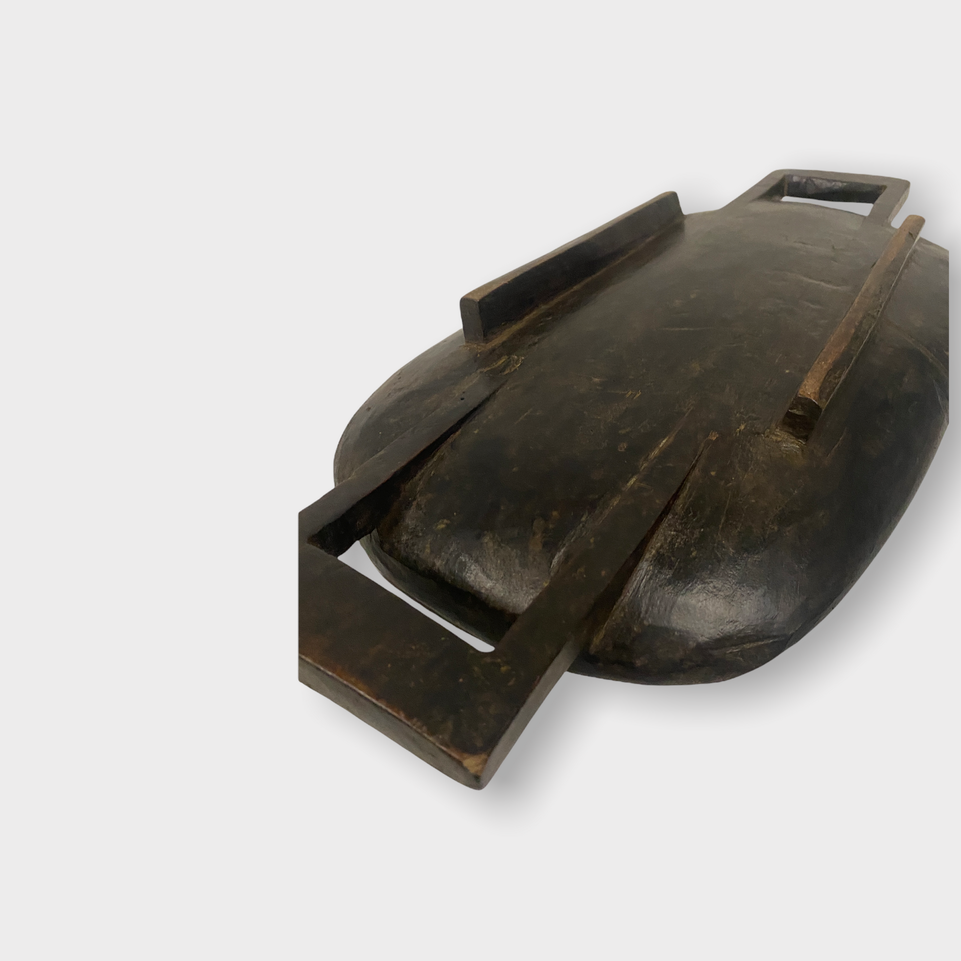 This wonderful handcrafted wooden Zulu platter is known by the local Zulu people as an ugqoko. The wood used does vary but in most cases the Zulu would use the Kiaat wood that is found locally in South Africa. The Zulu serving plate is an important item that is in daily use today and has handles on the side of the food platter for easy handling. The platters are often times placed upside down over another platter to act as a cover.