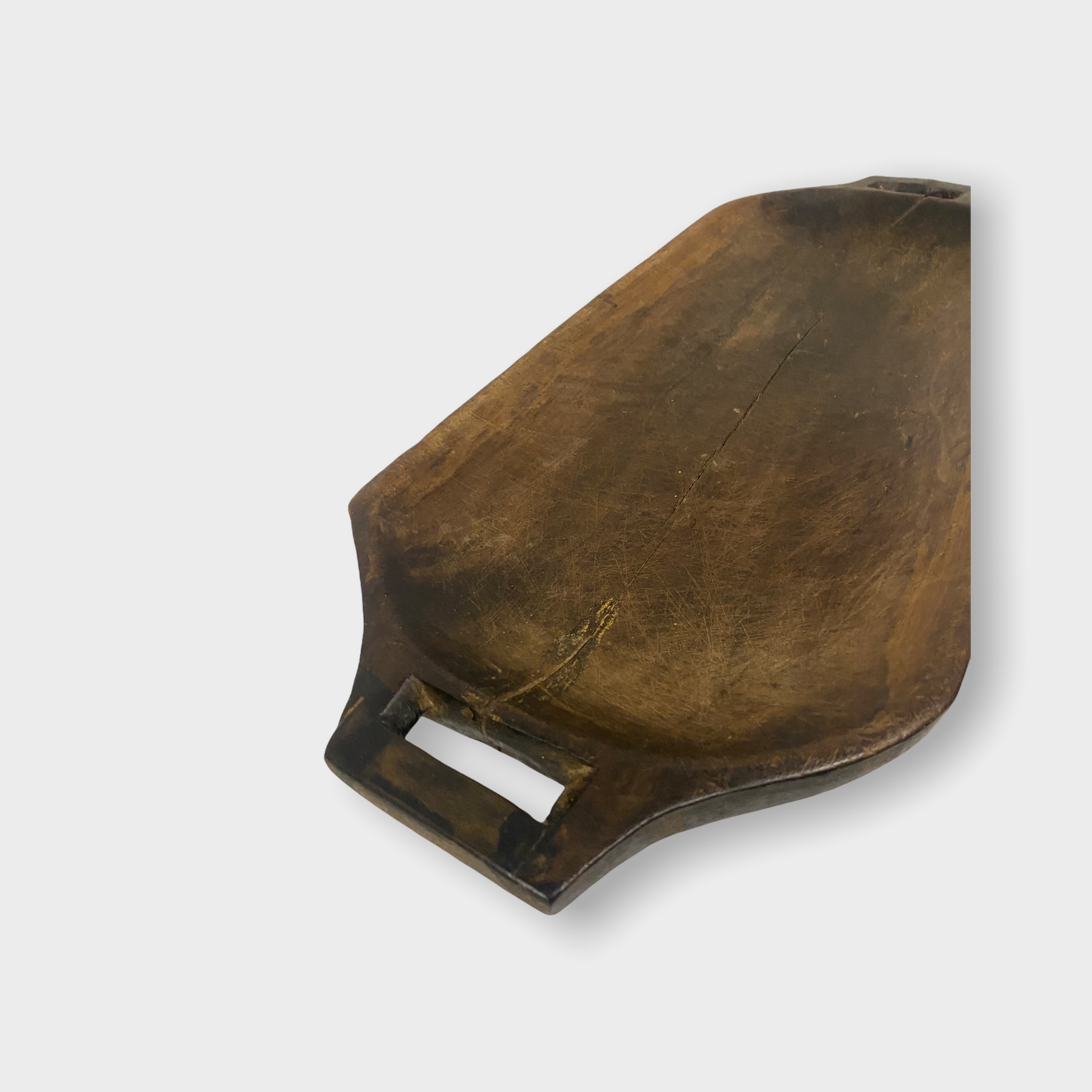 This wonderful handcrafted wooden Zulu platter is known by the local Zulu people as an ugqoko. The wood used does vary but in most cases the Zulu would use the Kiaat wood that is found locally in South Africa. The Zulu serving plate is an important item that is in daily use today and has handles on the side of the food platter for easy handling. The platters are often times placed upside down over another platter to act as a cover.