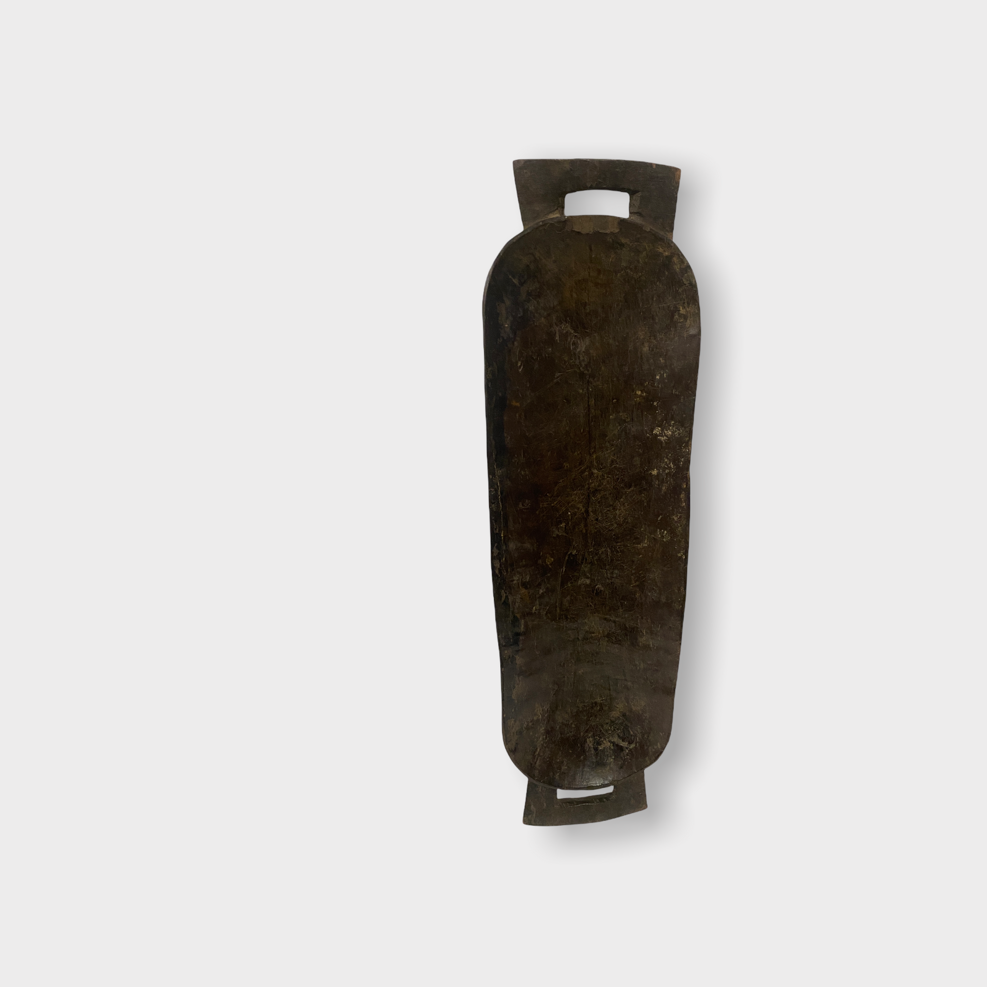 This wonderful handcrafted wooden Zulu platter is known by the local Zulu people as an ugqoko. The wood used does vary but in most cases the Zulu would use the Kiaat wood that is found locally in South Africa. The Zulu serving plate is an important item that is in daily use today and has handles on the side of the food platter for easy handling. The platters are often times placed upside down over another platter to act as a cover.