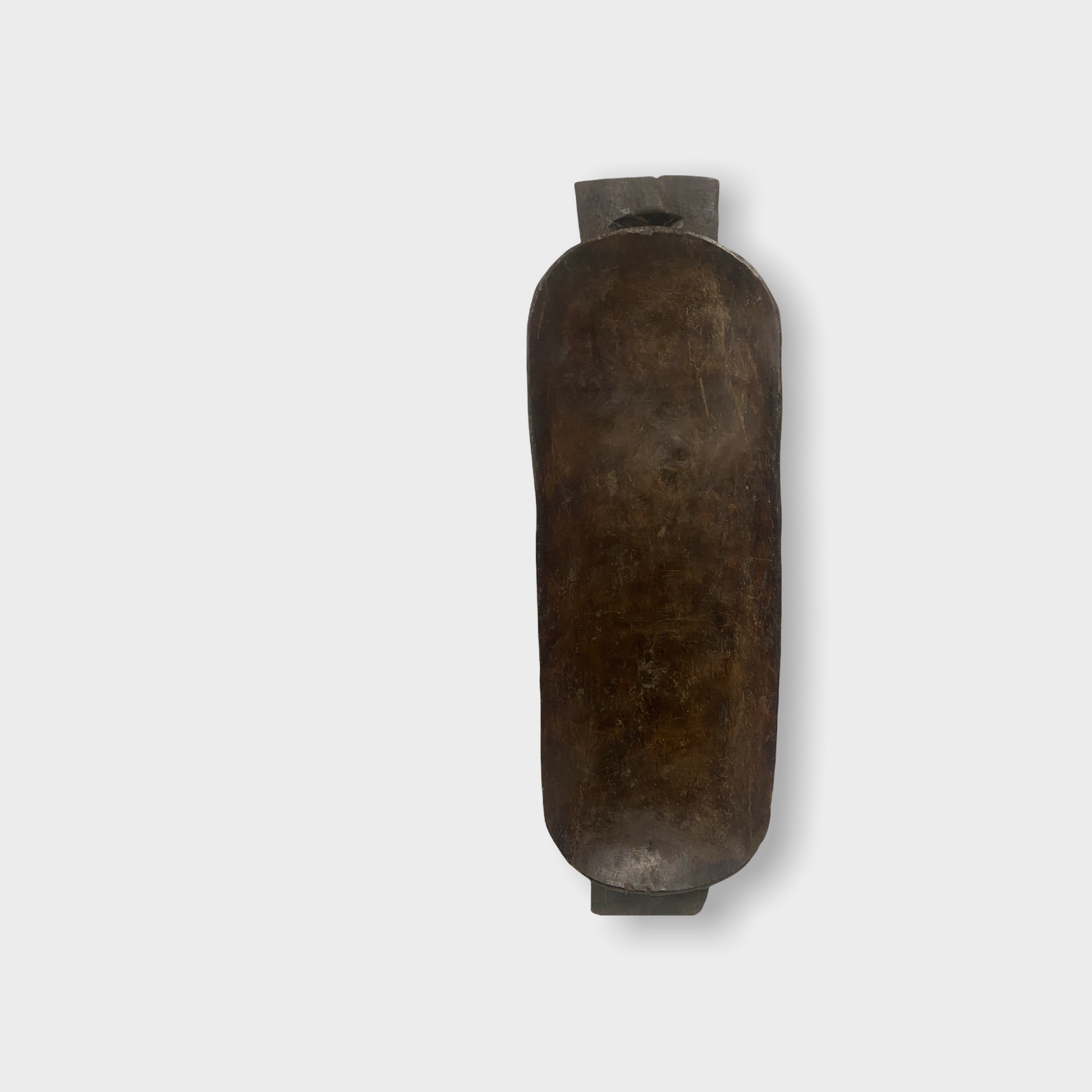 This wonderful handcrafted wooden Zulu platter is known by the local Zulu people as an ugqoko. The wood used does vary but in most cases the Zulu would use the Kiaat wood that is found locally in South Africa. The Zulu serving plate is an important item that is in daily use today and has handles on the side of the food platter for easy handling. The platters are often times placed upside down over another platter to act as a cover.