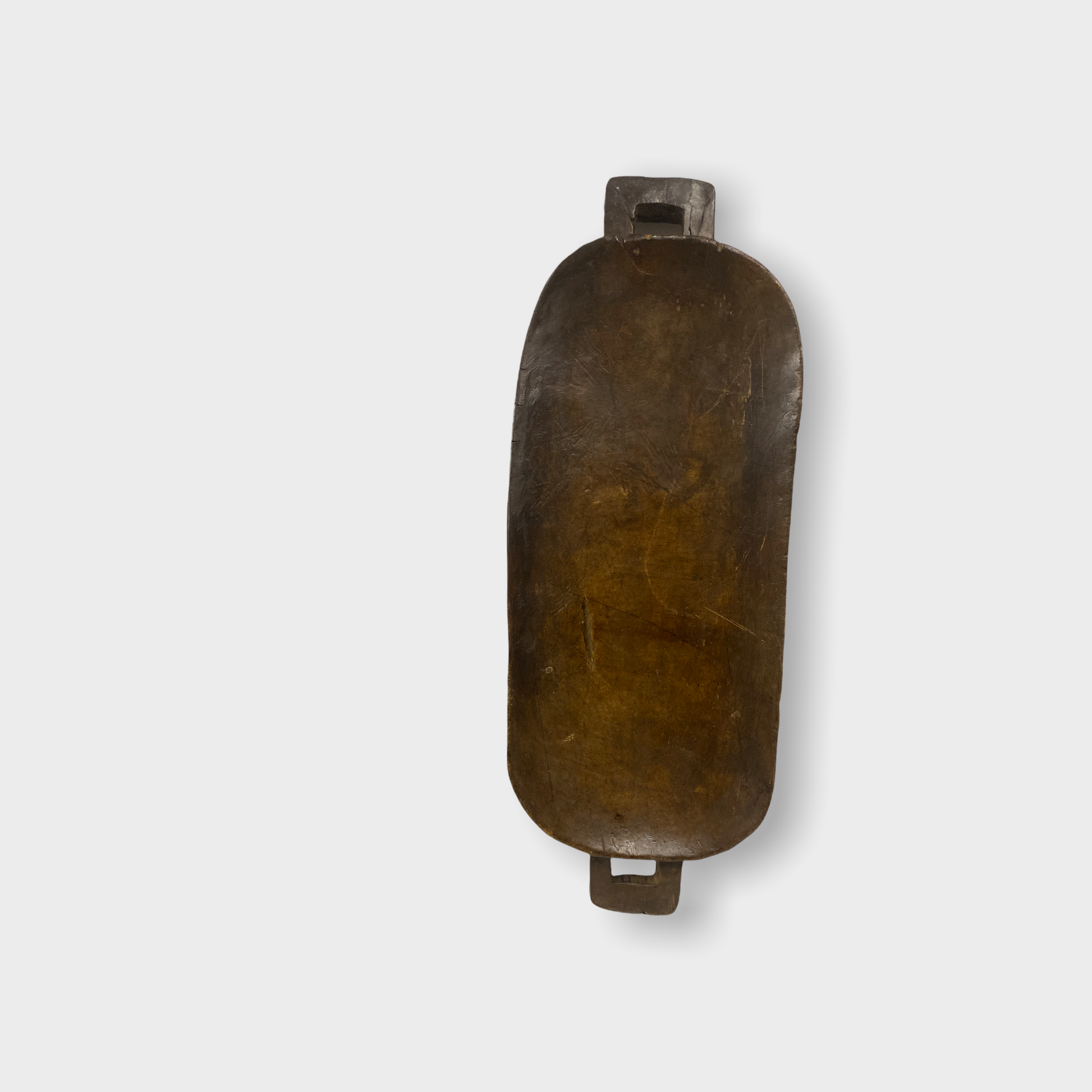 This wonderful handcrafted wooden Zulu platter is known by the local Zulu people as an ugqoko. The wood used does vary but in most cases the Zulu would use the Kiaat wood that is found locally in South Africa. The Zulu serving plate is an important item that is in daily use today and has handles on the side of the food platter for easy handling. The platters are often times placed upside down over another platter to act as a cover.