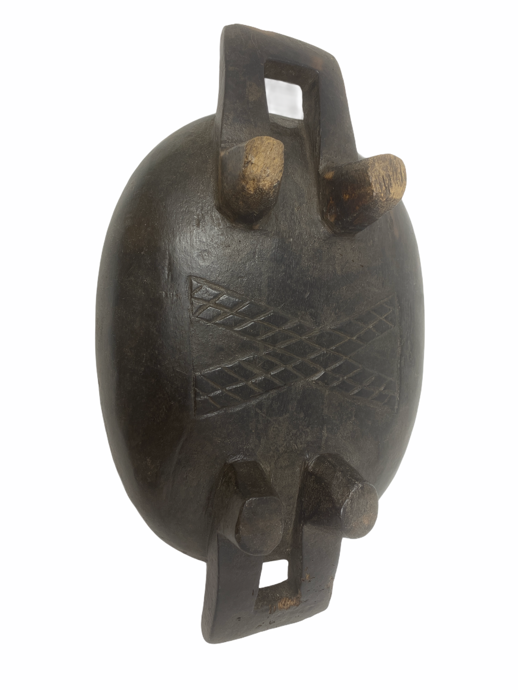 Has x4 small feet. Perfect for displaying fruit, cheeses or any other objects and on its own as a piece of Zulu sculptures art.