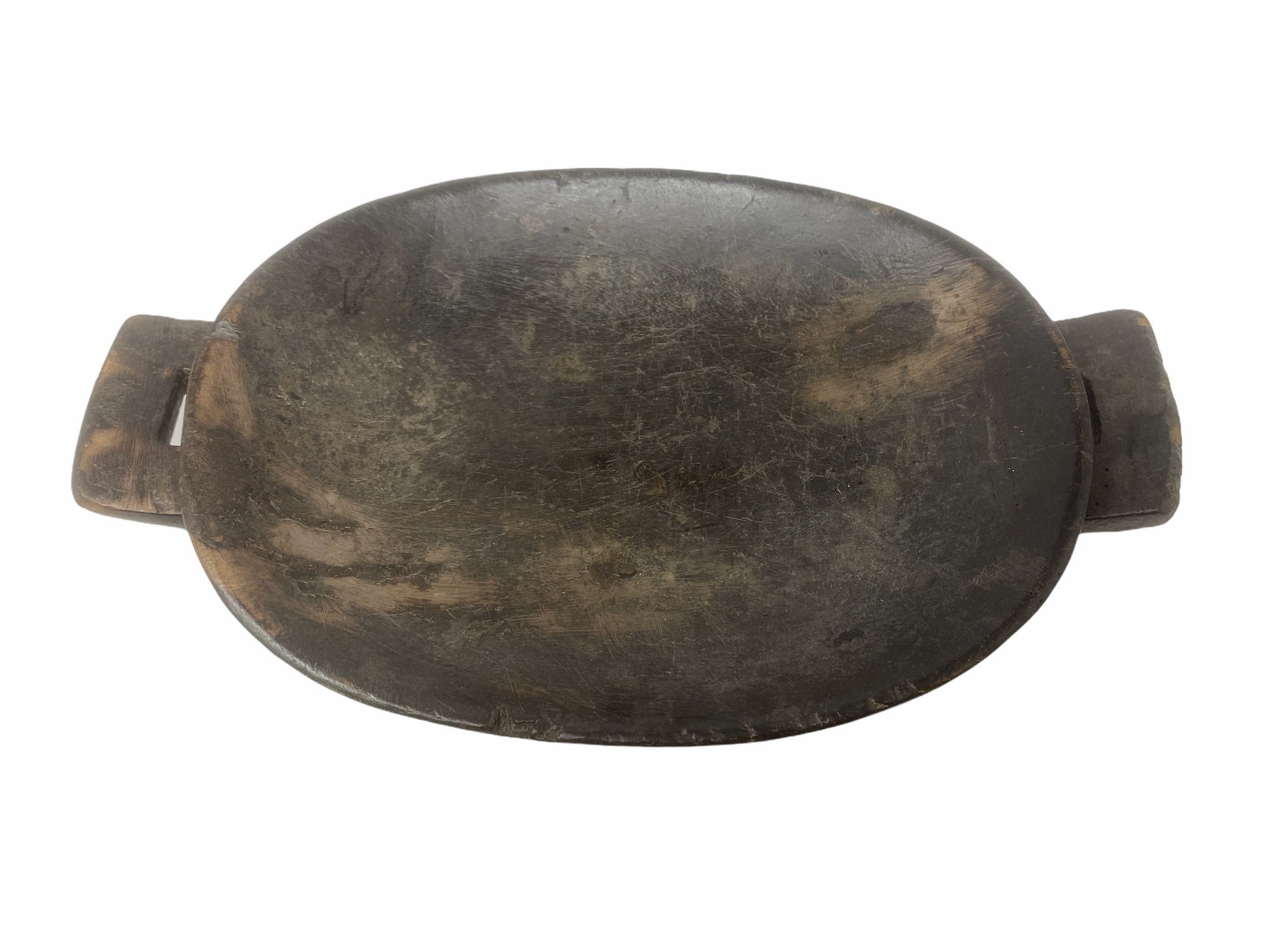 This wonderful handcrafted wooden Zulu platter is known by the local Zulu people as an ugqoko. The wood used does vary but in most cases the Zulu would use the Kiaat wood that is found locally in South Africa. The Zulu serving plate is an important item that is in daily use today and has handles on the side of the food platter for easy handling. The platters are often times placed upside down over another platter to act as a cover.