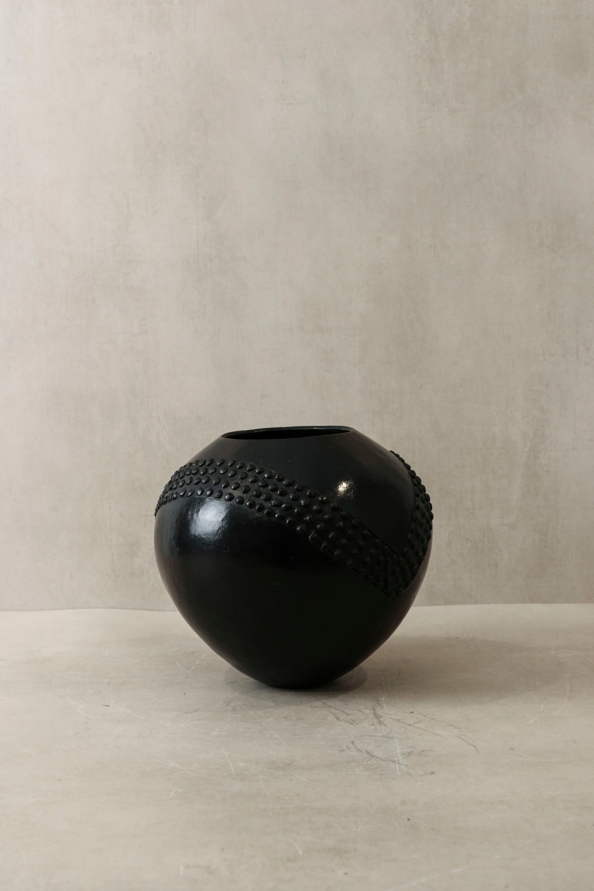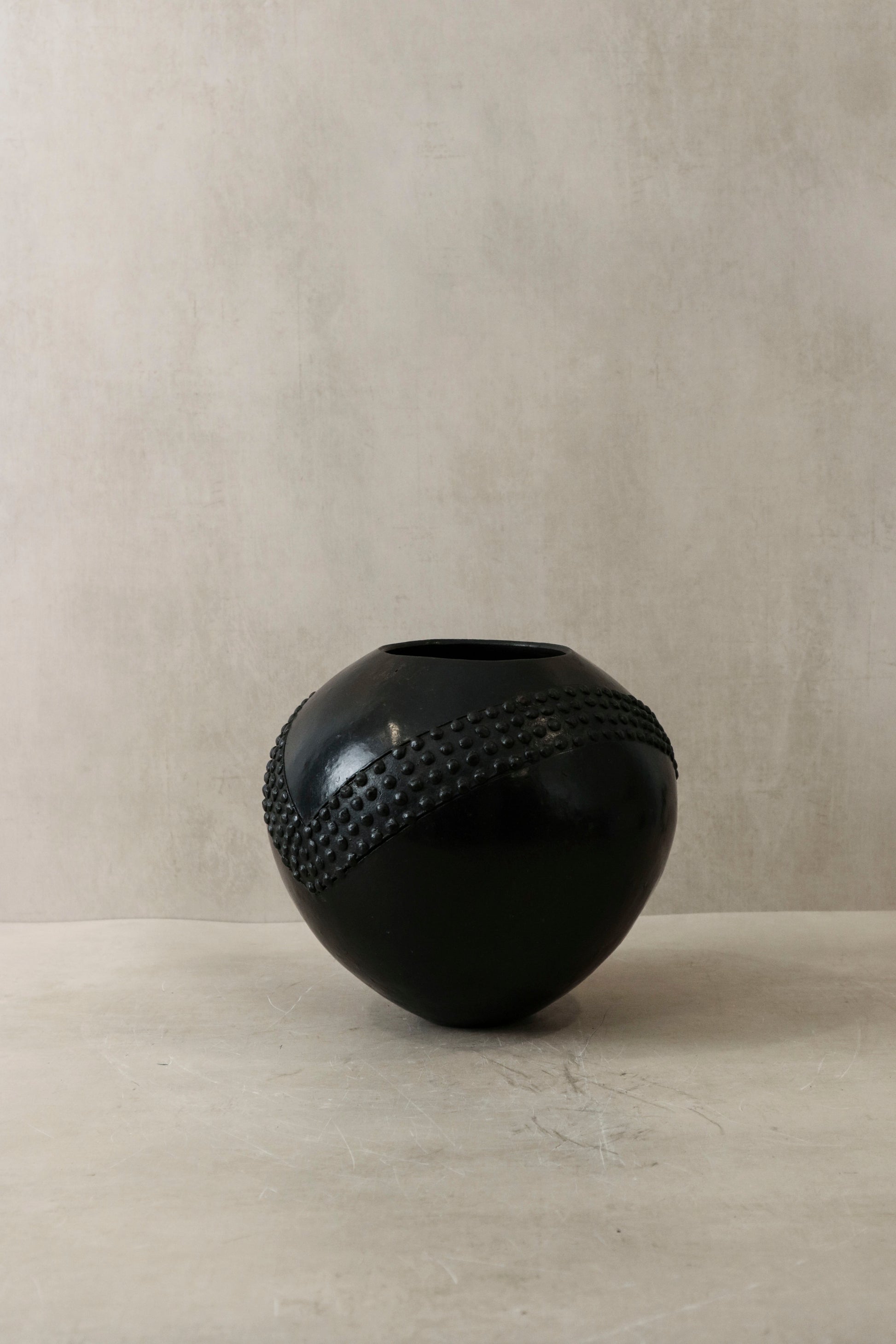 The Zulu pot, originating from South Africa, holds a distinguished role in the traditional practices of the Zulu people, primarily as vessels for the storage and consumption of beer. Crafted meticulously from clay harvested from the banks of local rivers, these pots undergo a meticulous hand-shaping process, followed by careful smoothing, culminating in firing over open-air fire pits. This time-honored technique not only imparts durability but also infuses each vessel with a distinctive character reflective of its artisan's cultural heritage, rendering every pot a unique testament to the rich tapestry of Zulu tradition.