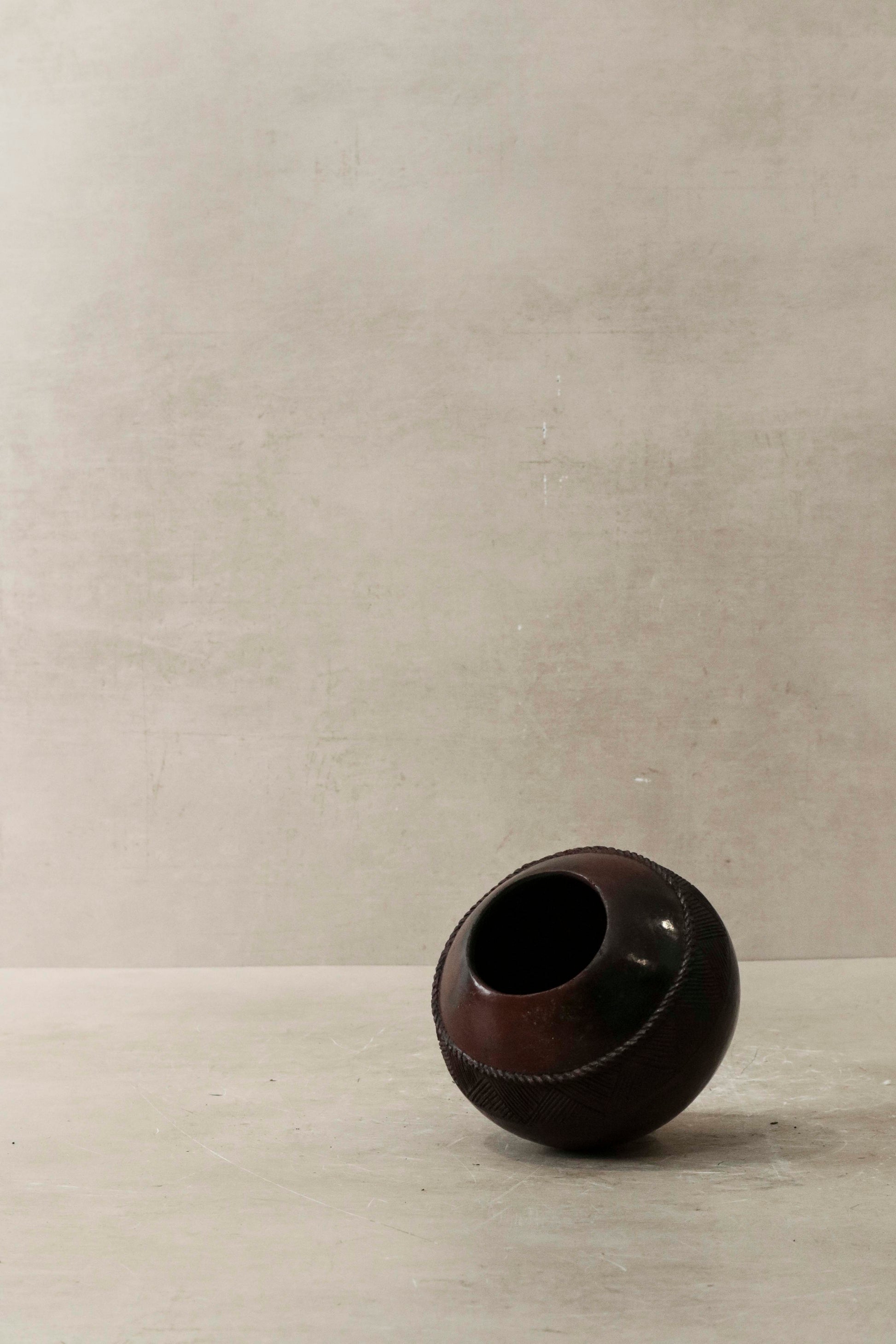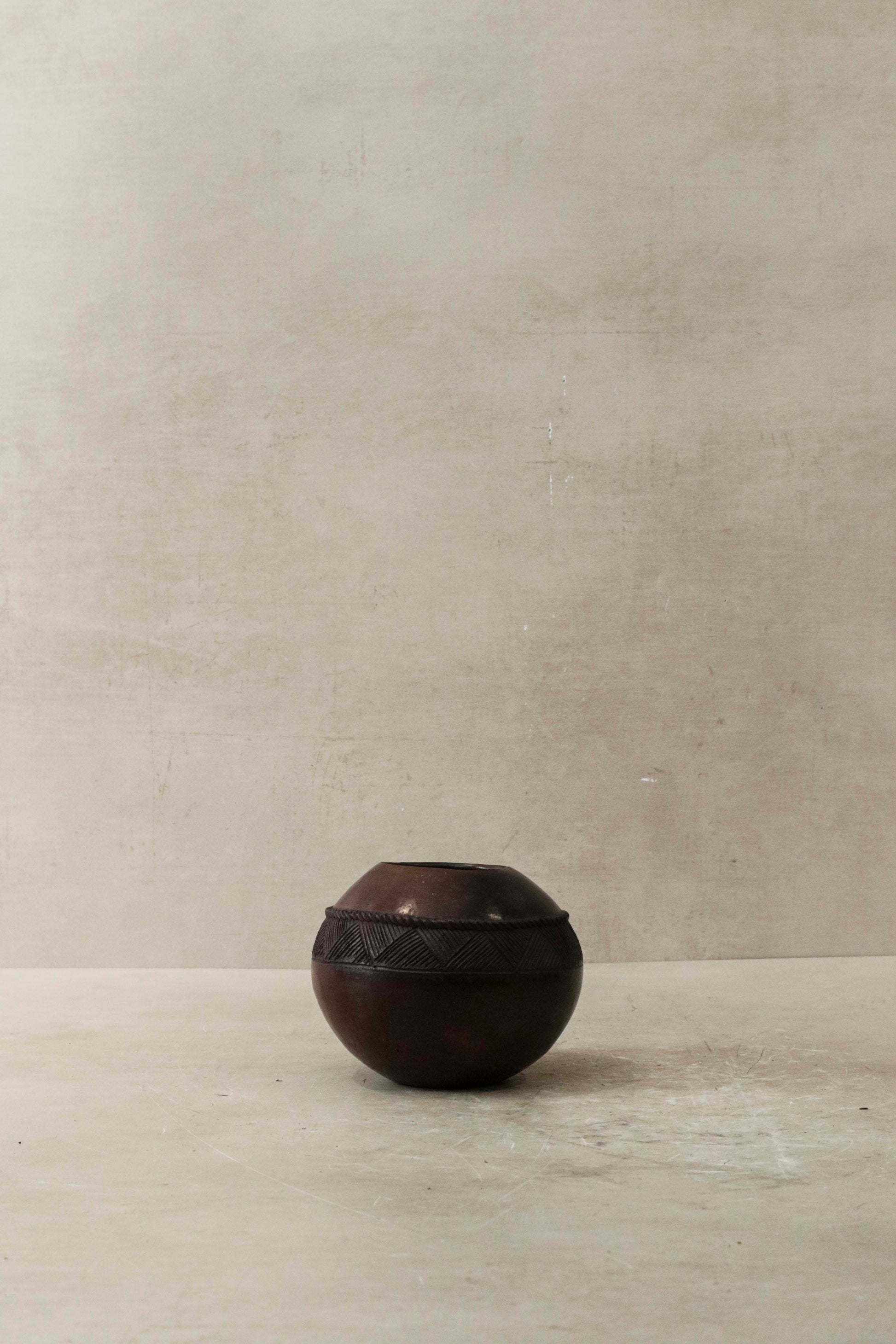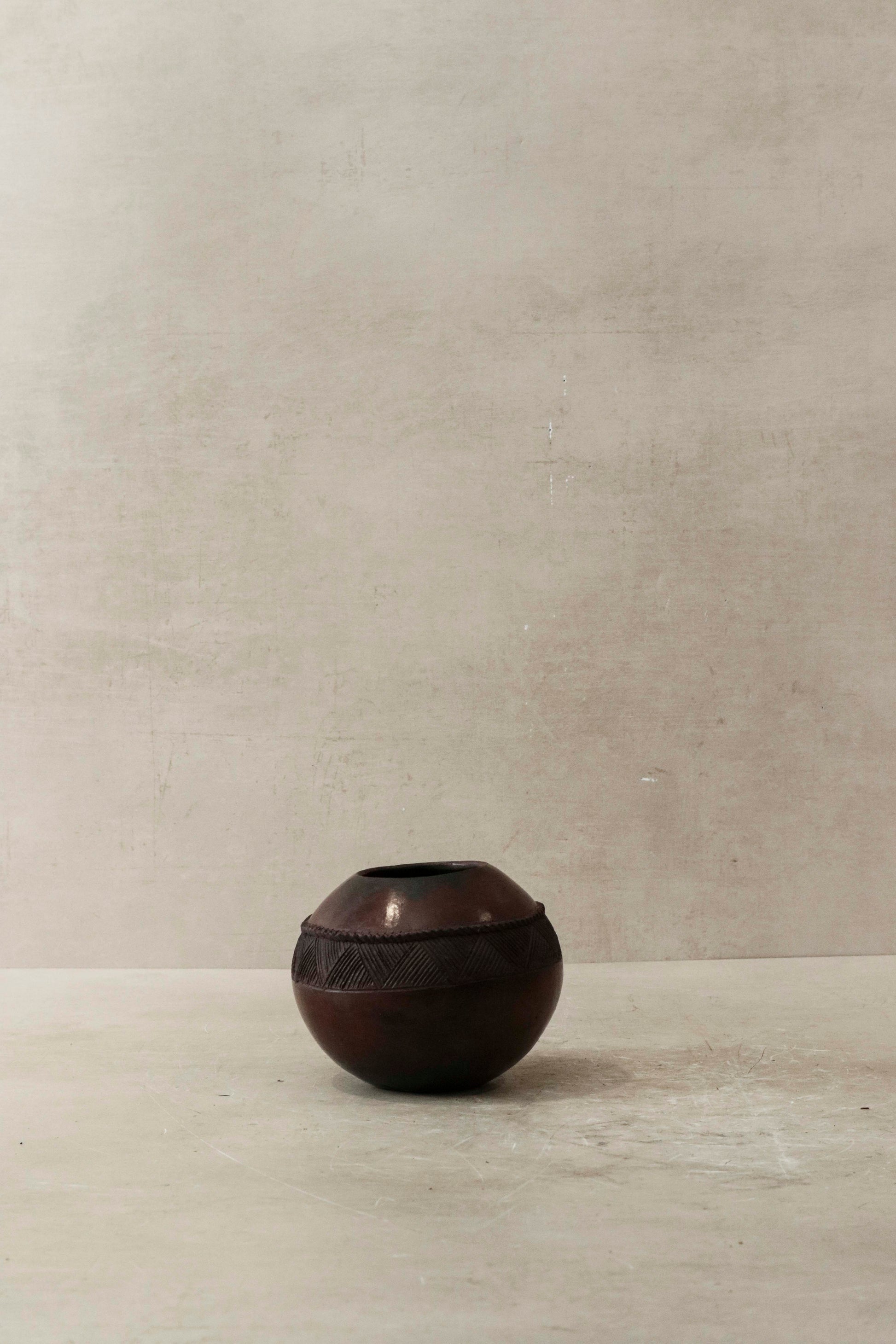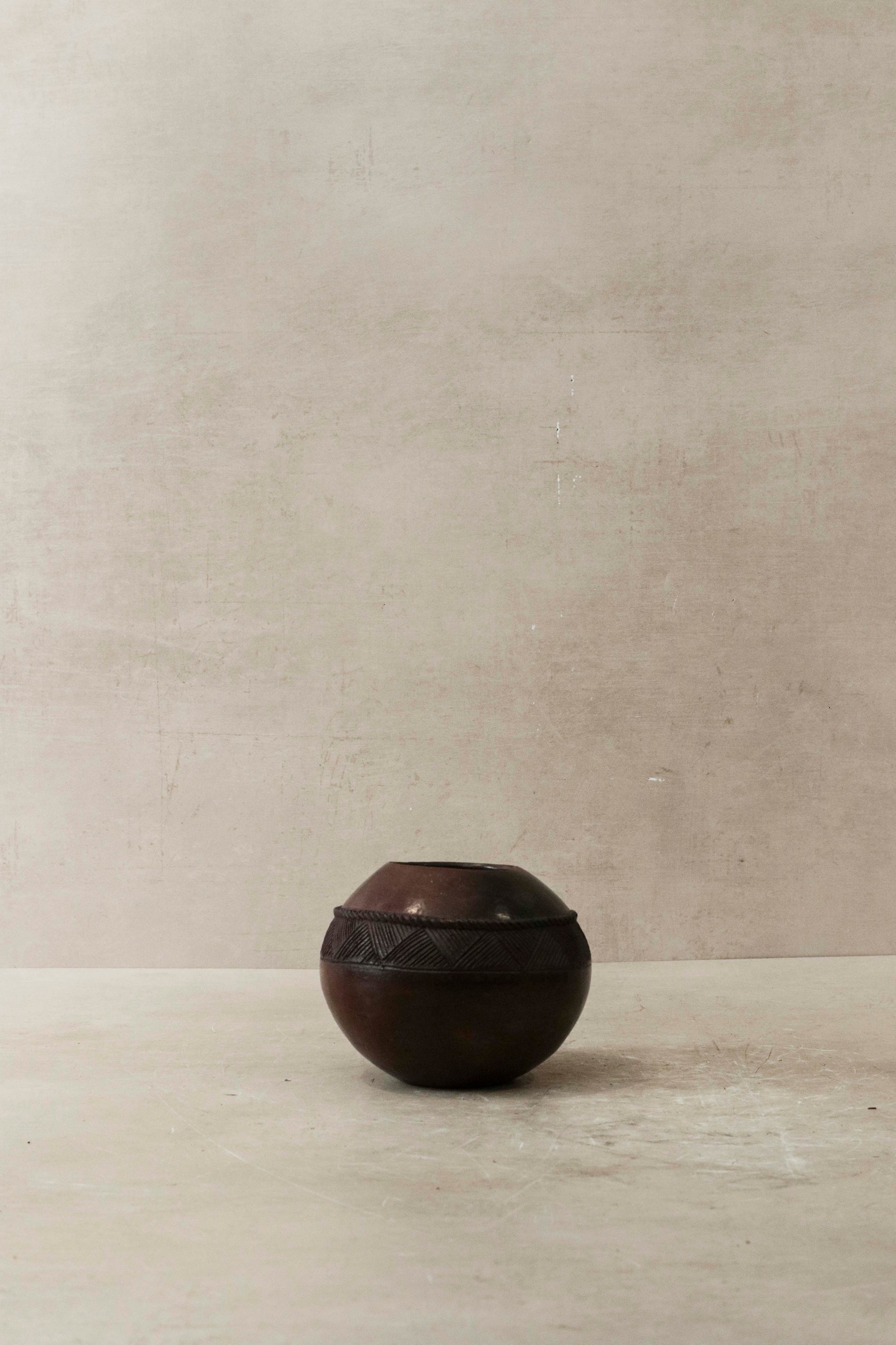 The Zulu pot, originating from South Africa, holds a distinguished role in the traditional practices of the Zulu people, primarily as vessels for the storage and consumption of beer. Crafted meticulously from clay harvested from the banks of local rivers, these pots undergo a meticulous hand-shaping process, followed by careful smoothing, culminating in firing over open-air fire pits. This time-honored technique not only imparts durability but also infuses each vessel with a distinctive character reflective of its artisan's cultural heritage, rendering every pot a unique testament to the rich tapestry of Zulu tradition.