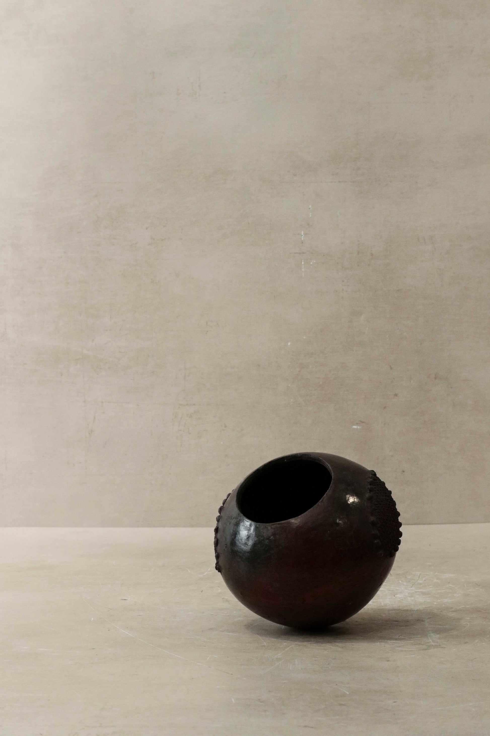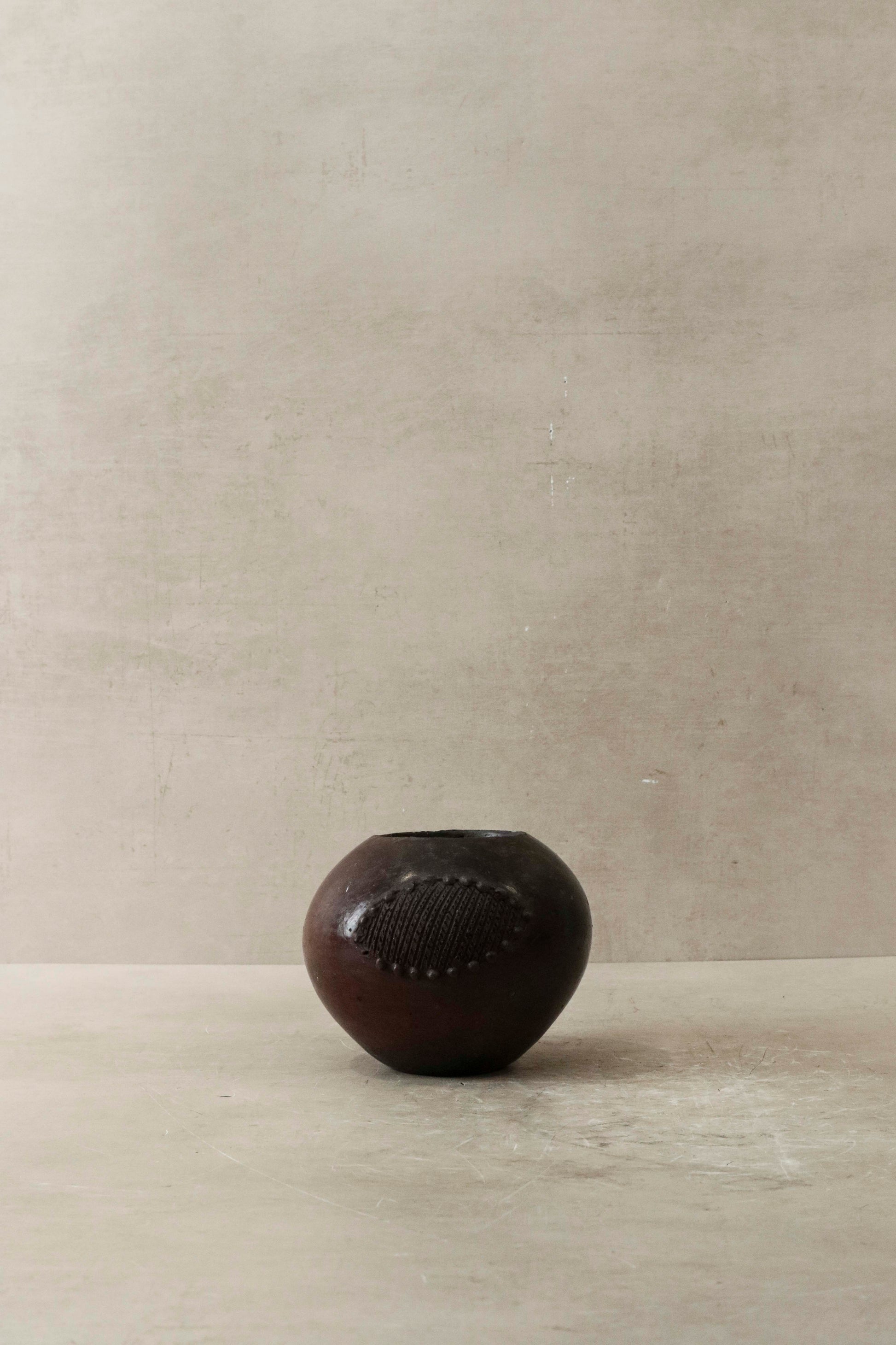 The Zulu pot, originating from South Africa, holds a distinguished role in the traditional practices of the Zulu people, primarily as vessels for the storage and consumption of beer. Crafted meticulously from clay harvested from the banks of local rivers, these pots undergo a meticulous hand-shaping process, followed by careful smoothing, culminating in firing over open-air fire pits. This time-honored technique not only imparts durability but also infuses each vessel with a distinctive character reflective of its artisan's cultural heritage, rendering every pot a unique testament to the rich tapestry of Zulu tradition.