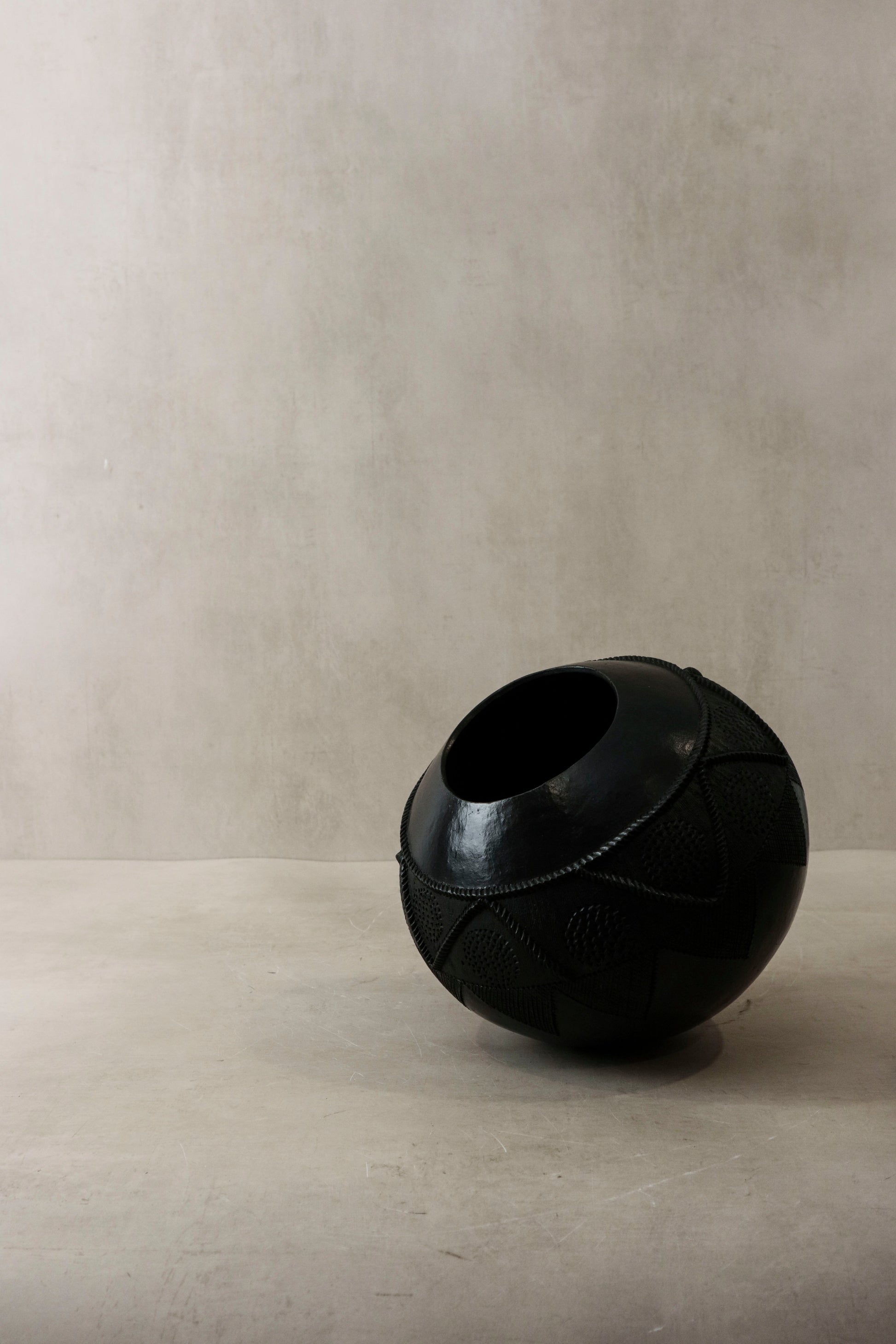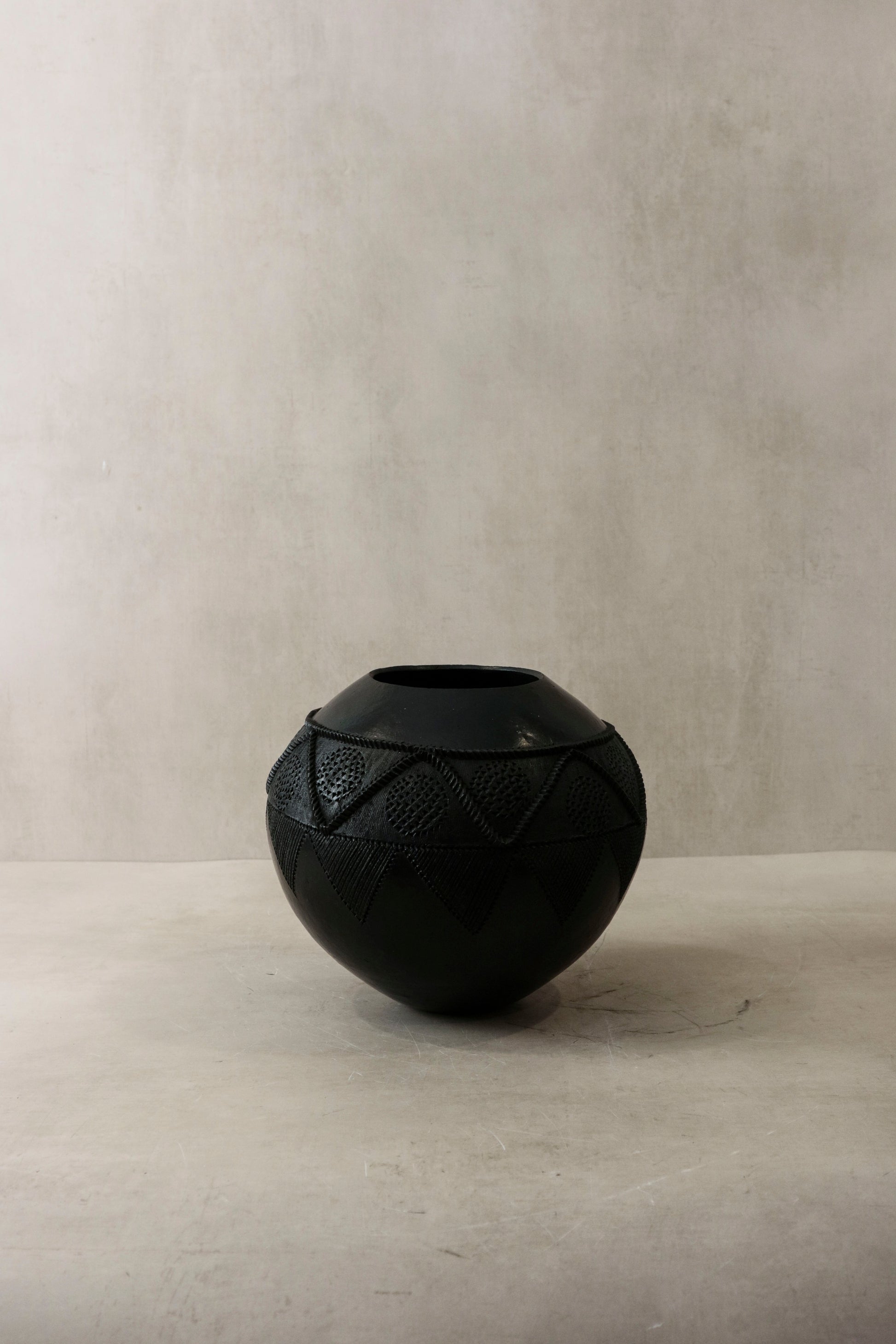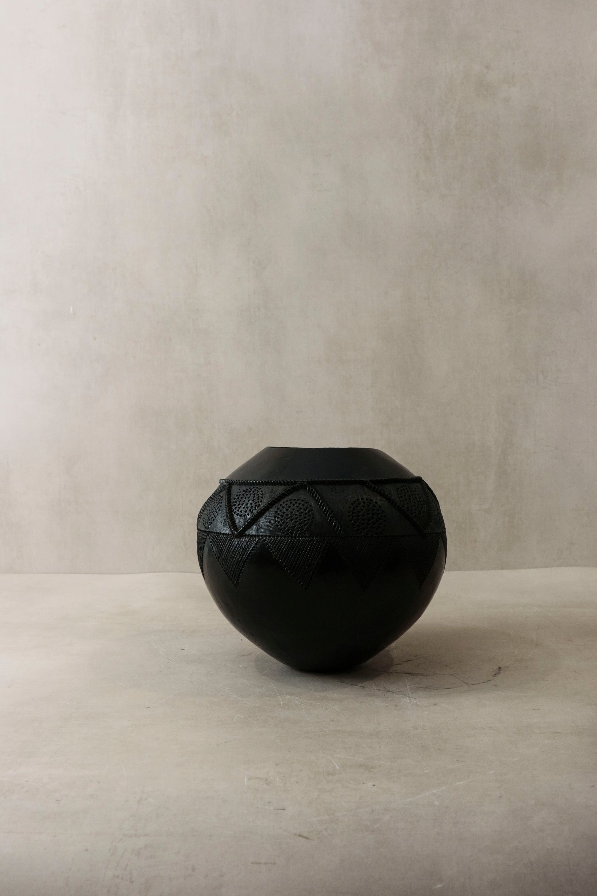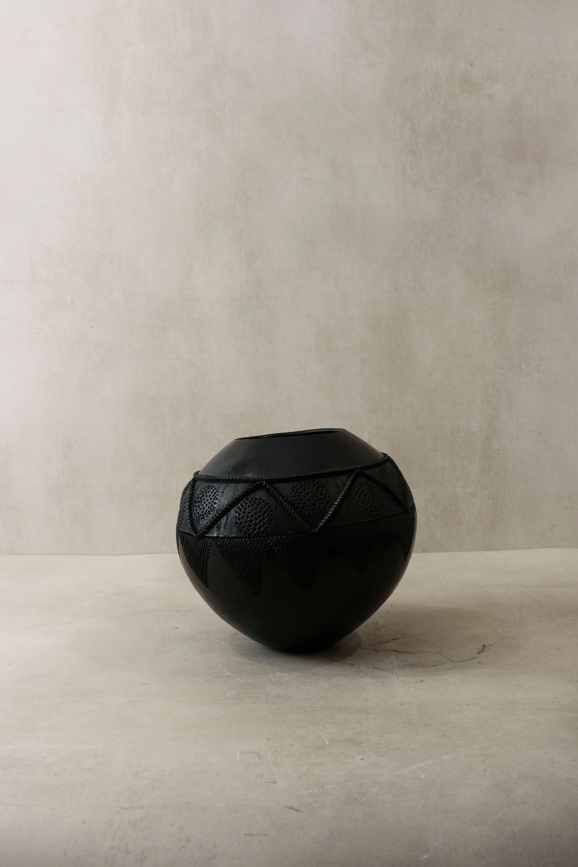 The Zulu pot, originating from South Africa, holds a distinguished role in the traditional practices of the Zulu people, primarily as vessels for the storage and consumption of beer. Crafted meticulously from clay harvested from the banks of local rivers, these pots undergo a meticulous hand-shaping process, followed by careful smoothing, culminating in firing over open-air fire pits. This time-honored technique not only imparts durability but also infuses each vessel with a distinctive character reflective of its artisan's cultural heritage, rendering every pot a unique testament to the rich tapestry of Zulu tradition.