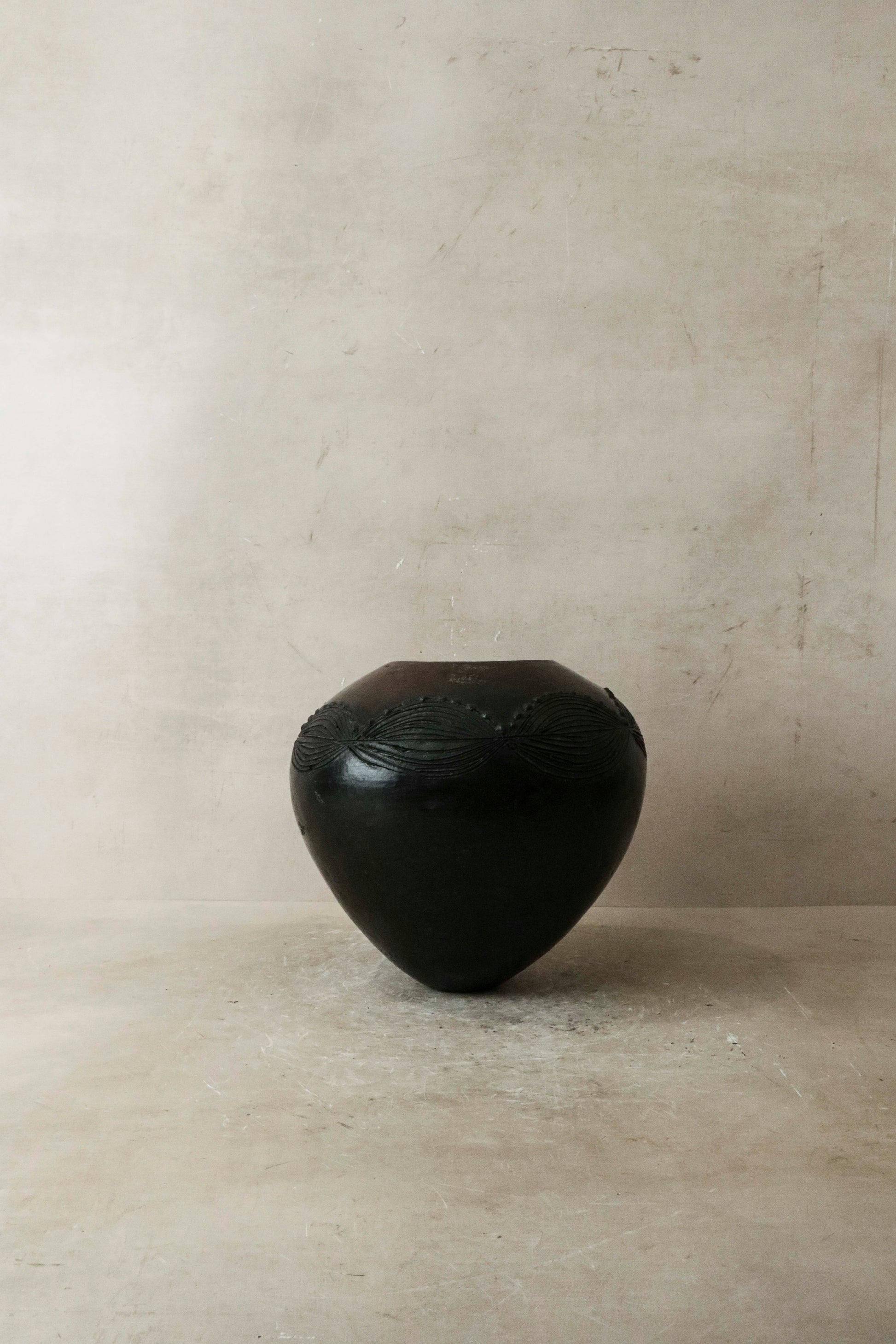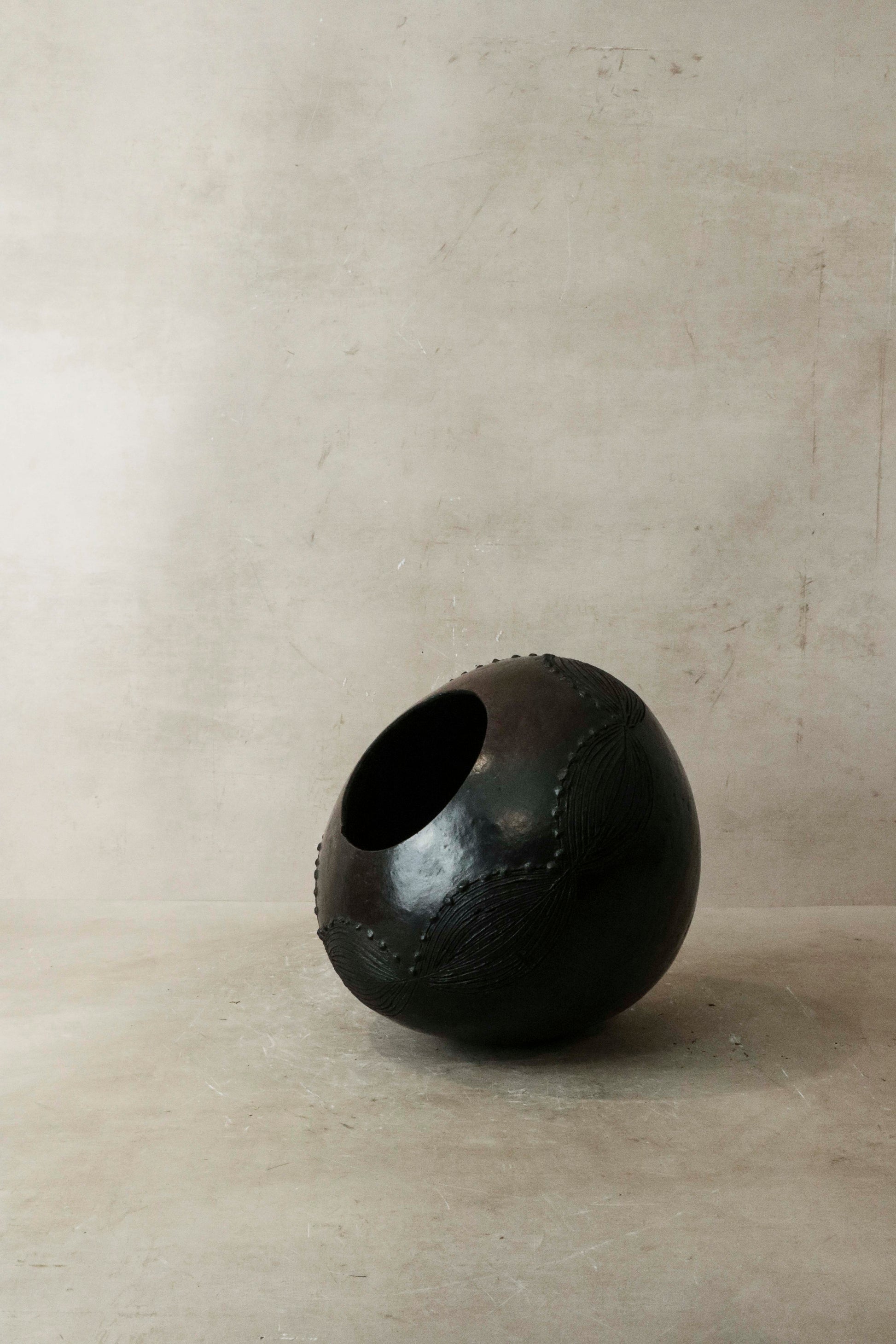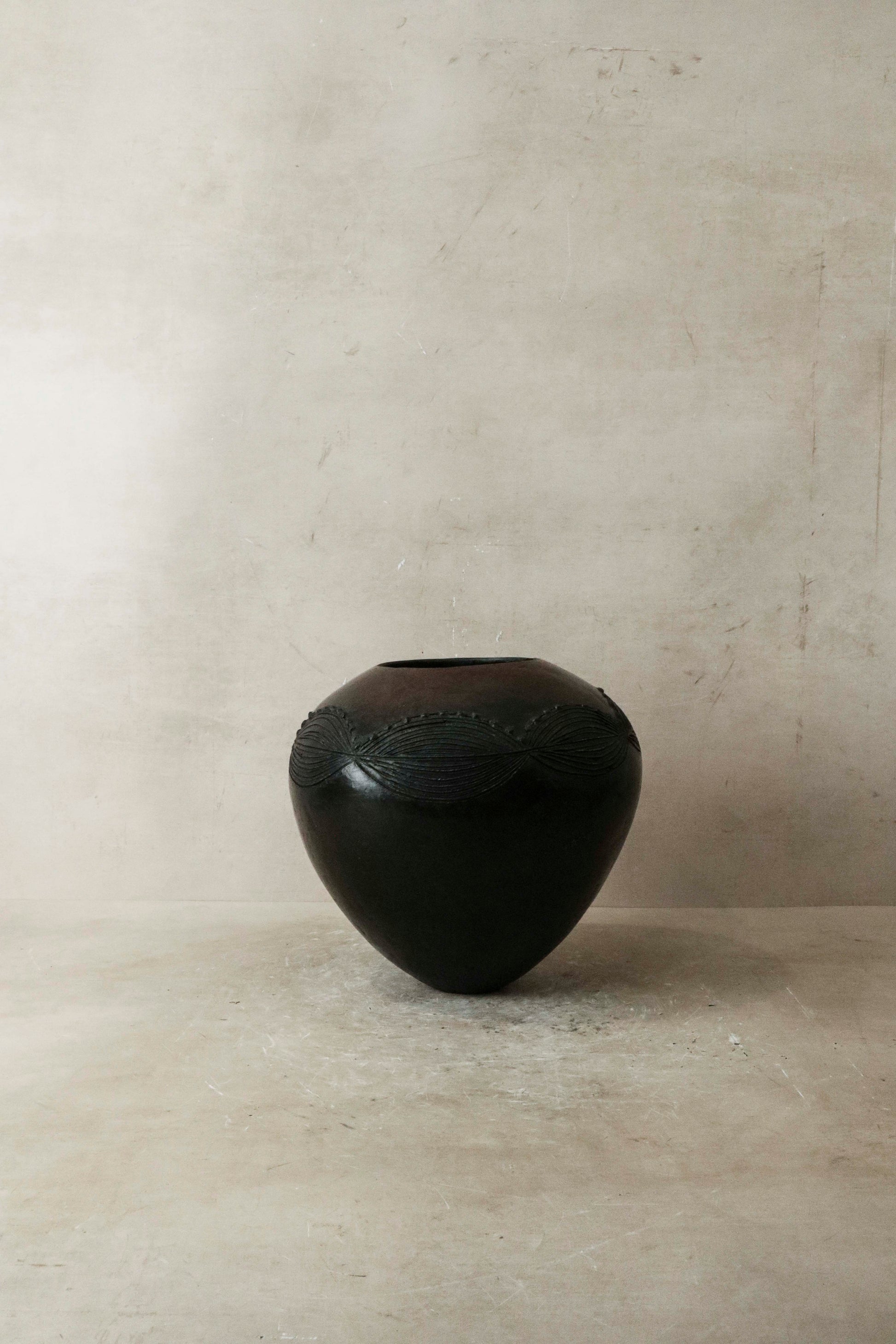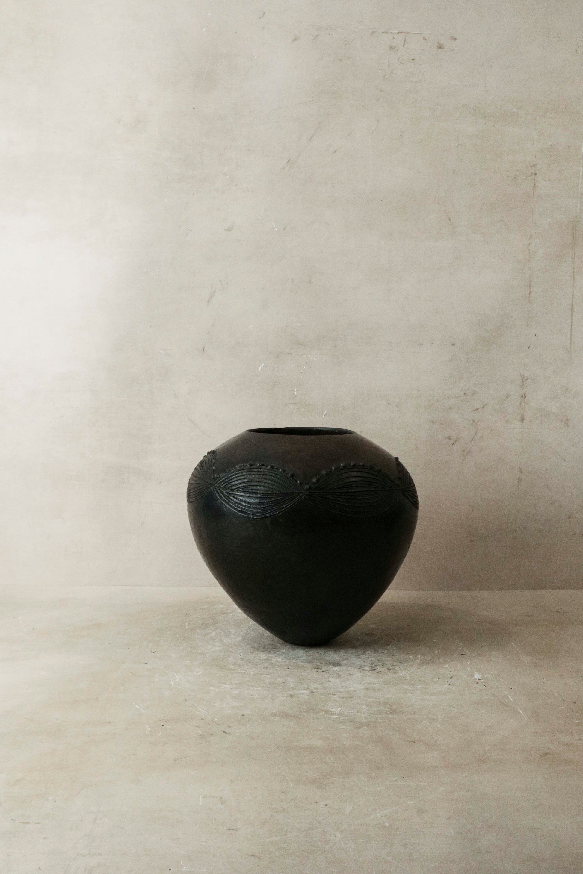 The Zulu pot, originating from South Africa, holds a distinguished role in the traditional practices of the Zulu people, primarily as vessels for the storage and consumption of beer. Crafted meticulously from clay harvested from the banks of local rivers, these pots undergo a meticulous hand-shaping process, followed by careful smoothing, culminating in firing over open-air fire pits. This time-honored technique not only imparts durability but also infuses each vessel with a distinctive character reflective of its artisan's cultural heritage, rendering every pot a unique testament to the rich tapestry of Zulu tradition.