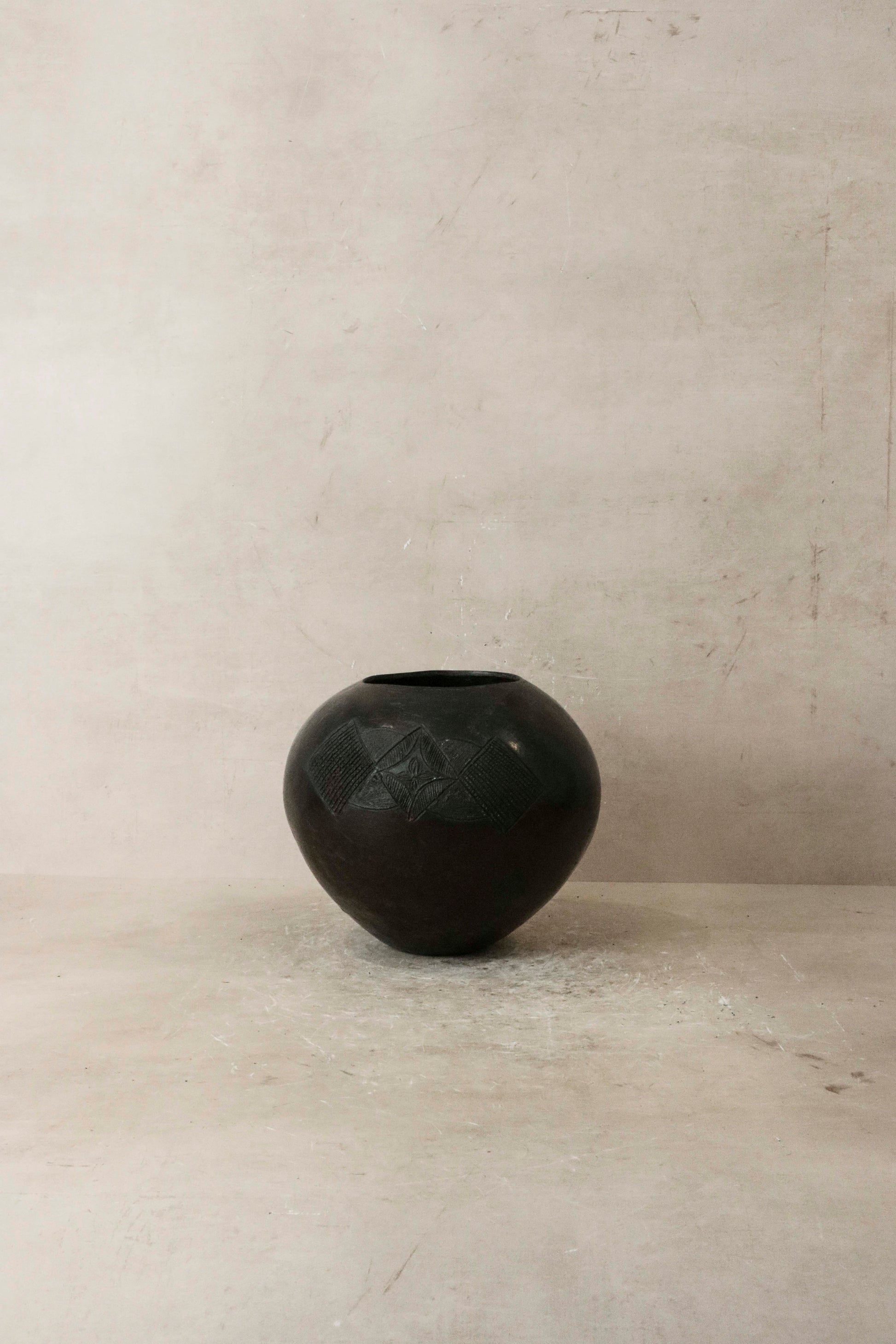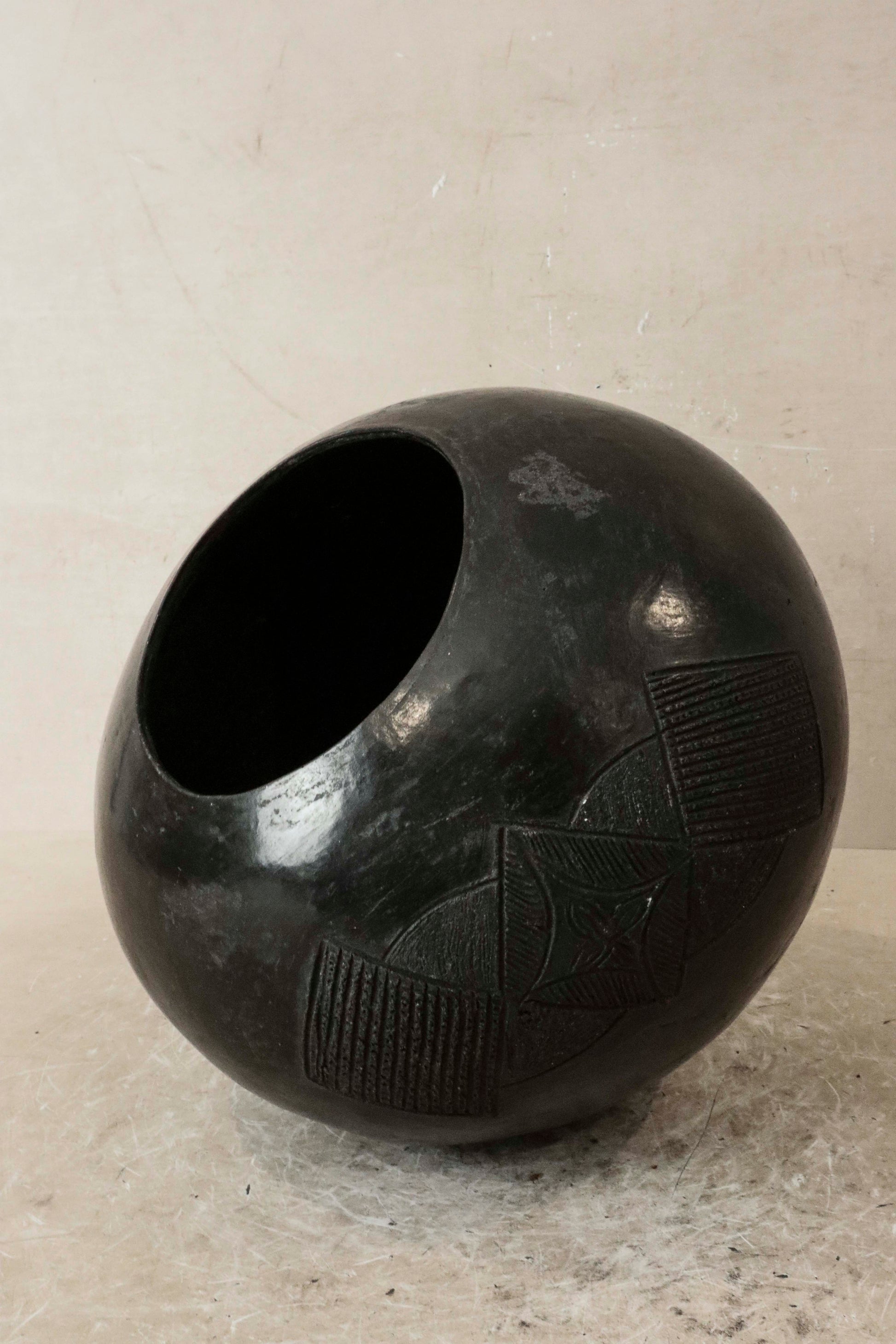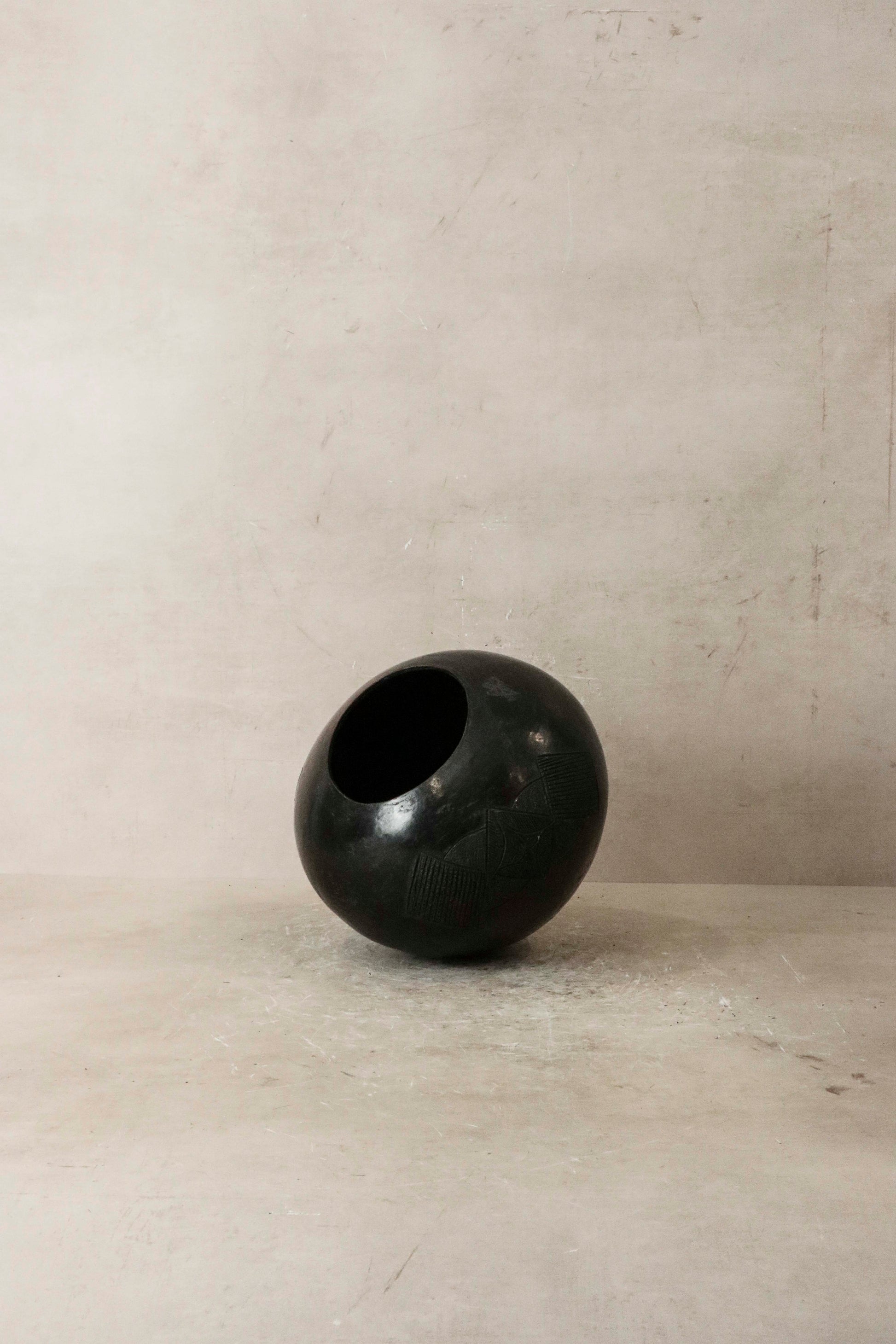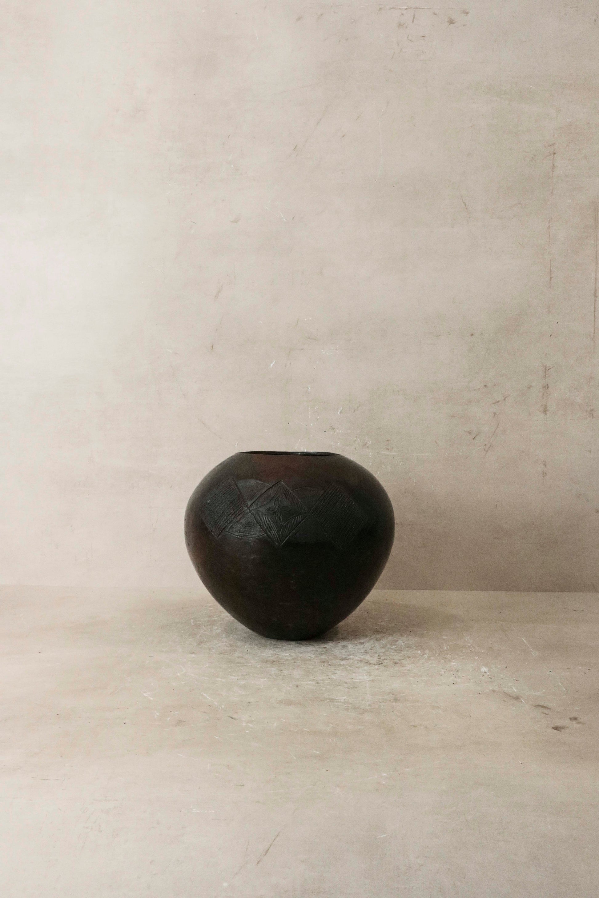 The Zulu pot, originating from South Africa, holds a distinguished role in the traditional practices of the Zulu people, primarily as vessels for the storage and consumption of beer. Crafted meticulously from clay harvested from the banks of local rivers, these pots undergo a meticulous hand-shaping process, followed by careful smoothing, culminating in firing over open-air fire pits. This time-honored technique not only imparts durability but also infuses each vessel with a distinctive character reflective of its artisan's cultural heritage, rendering every pot a unique testament to the rich tapestry of Zulu tradition.